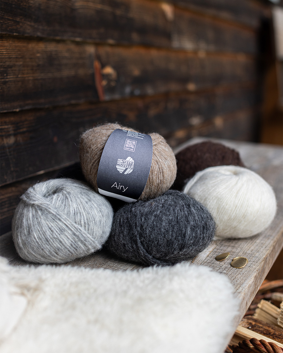 Airy er et ultralett, luftig garn med en eksklusiv karakter – perfekt for moderne, voluminøse strikkeplagg som likevel forblir fjærlette og luftige. Den innovative blandingen gir en myk følelse, behagelig varme og maksimal komfort. Enten det er gensere, jakker, sjal eller tilbehør – med Airy skaper du moderne favorittplagg med en myk look og følelse.