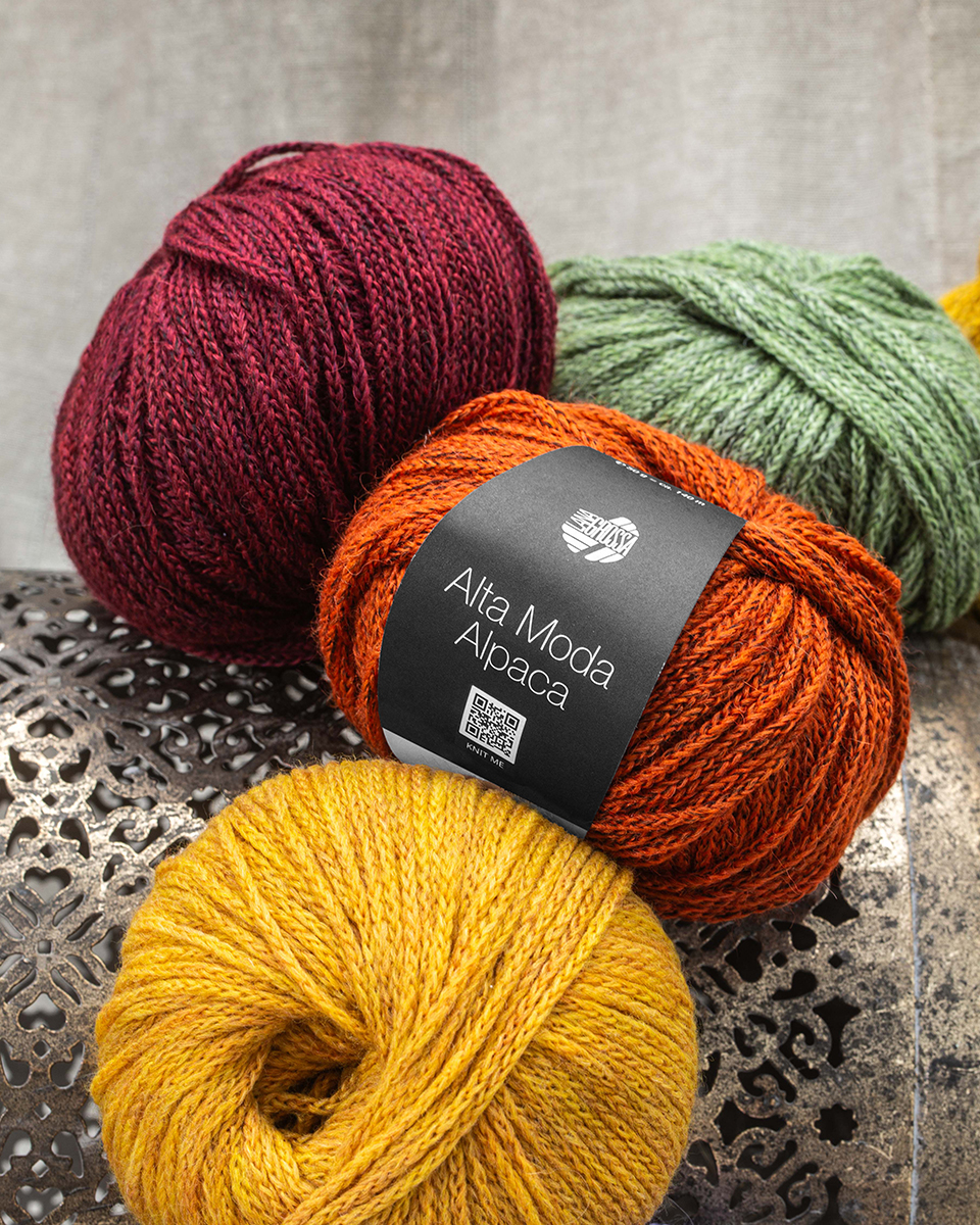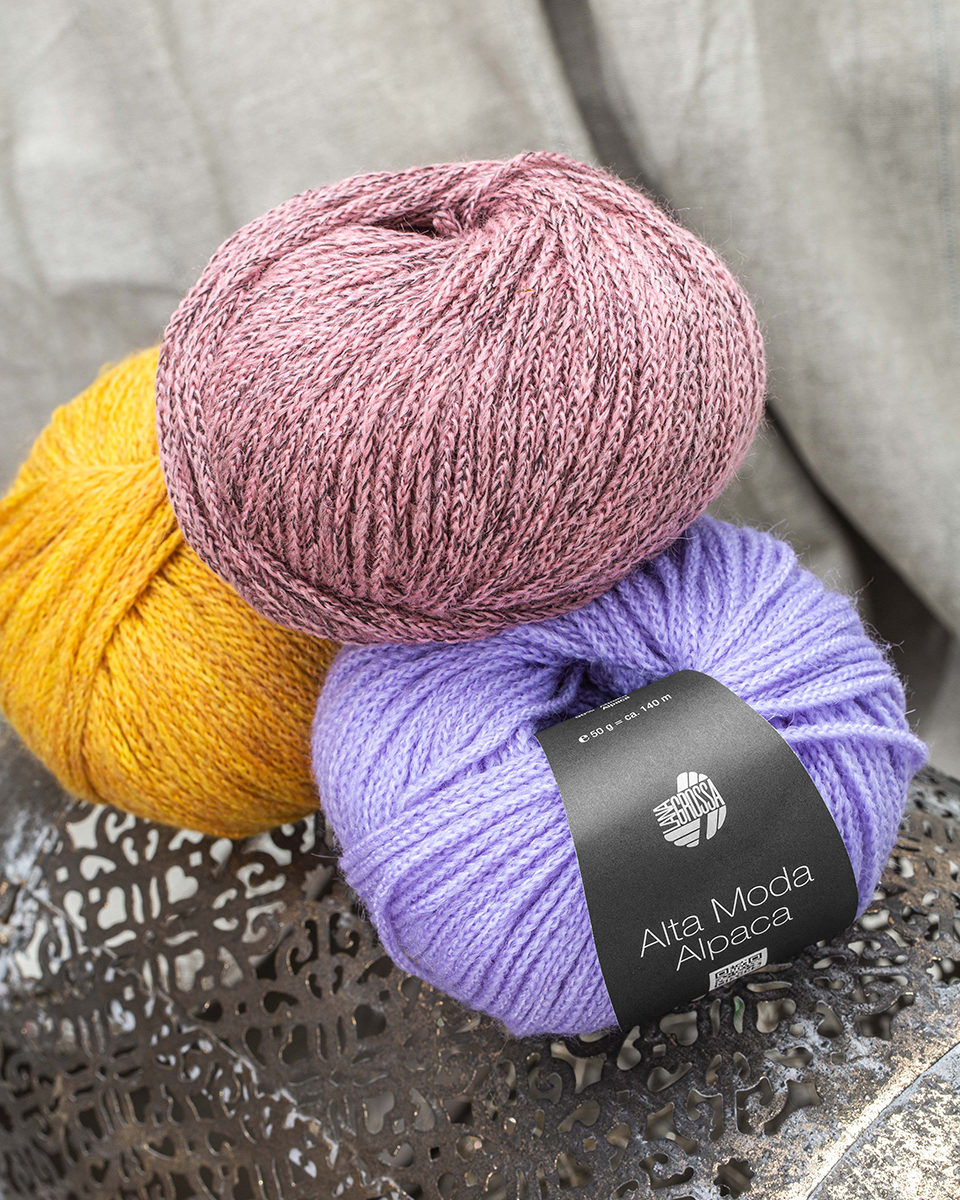 Alta Moda Alpaca er et spesielt eksklusivt premiumgarn av ultrafint babyalpakka, supplert med en liten andel polyamid og ull som gir formstabilitet og holdbarhet. Den innovative kjedestrukturen skaper en luftig tråd som samtidig er voluminøs og fjærlett – perfekt for myke, moteriktige strikkeplagg med struktur og dybde. Det moderne melerte utseendet og den fine luftigheten gir hvert prosjekt en spesiell eleganse – uansett om du velger klassiske farger eller trendy toner.