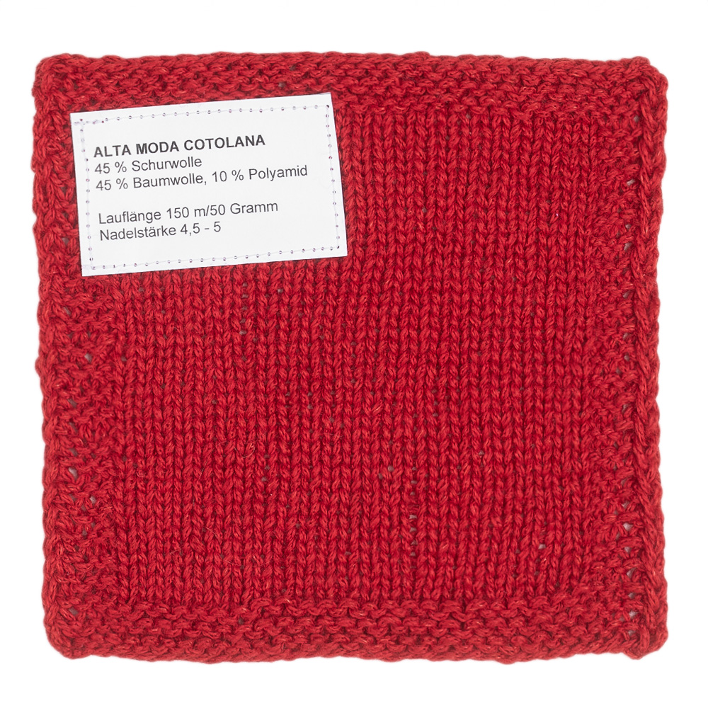 Alta Moda Cotolana er et moderne helårsgarn med behagelig letthet og myk følelse. Den høykvalitets blandingen av bomull, ull og polyamid kombinerer naturlig friskhet med varmende mykhet – ideelt for strikkeplagg som kan brukes både om våren, høsten og vinteren. Den innovative kjedestrukturen gir volum med lav vekt og et klart, jevnt maskebilde.