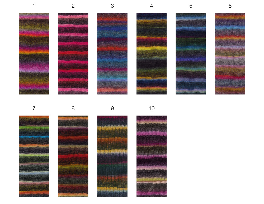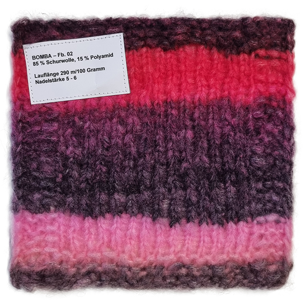 Flerfargede striper og en myk, voluminøs struktur: Printgarnet Bomba gir raske, effektfulle strikkeresultater. Ideelt for nybegynnere.