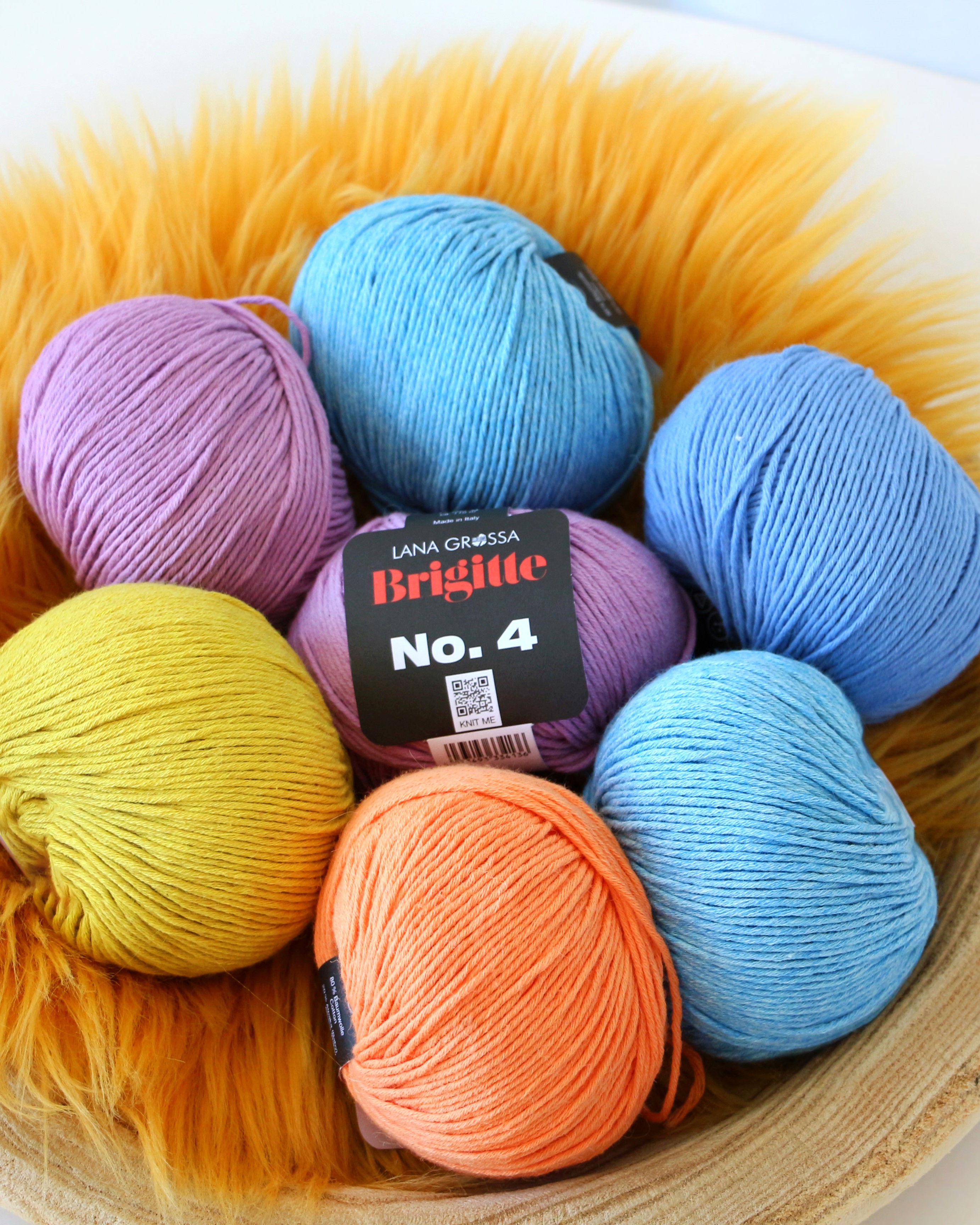 Brigitte No. 4 er et mykt, lett helårsgarn, utviklet i samarbeid med magasinet BRIGITTE. Den eksklusive blandingen av 80 % bomull og 20 % babyalpakka gir garnet en behagelig, naturlig følelse med et hint av luksuriøs mykhet. Den fine kjedestrukturen gjør det voluminøst og samtidig luftig – ideelt for moderne strikkeplagg med lett fall.