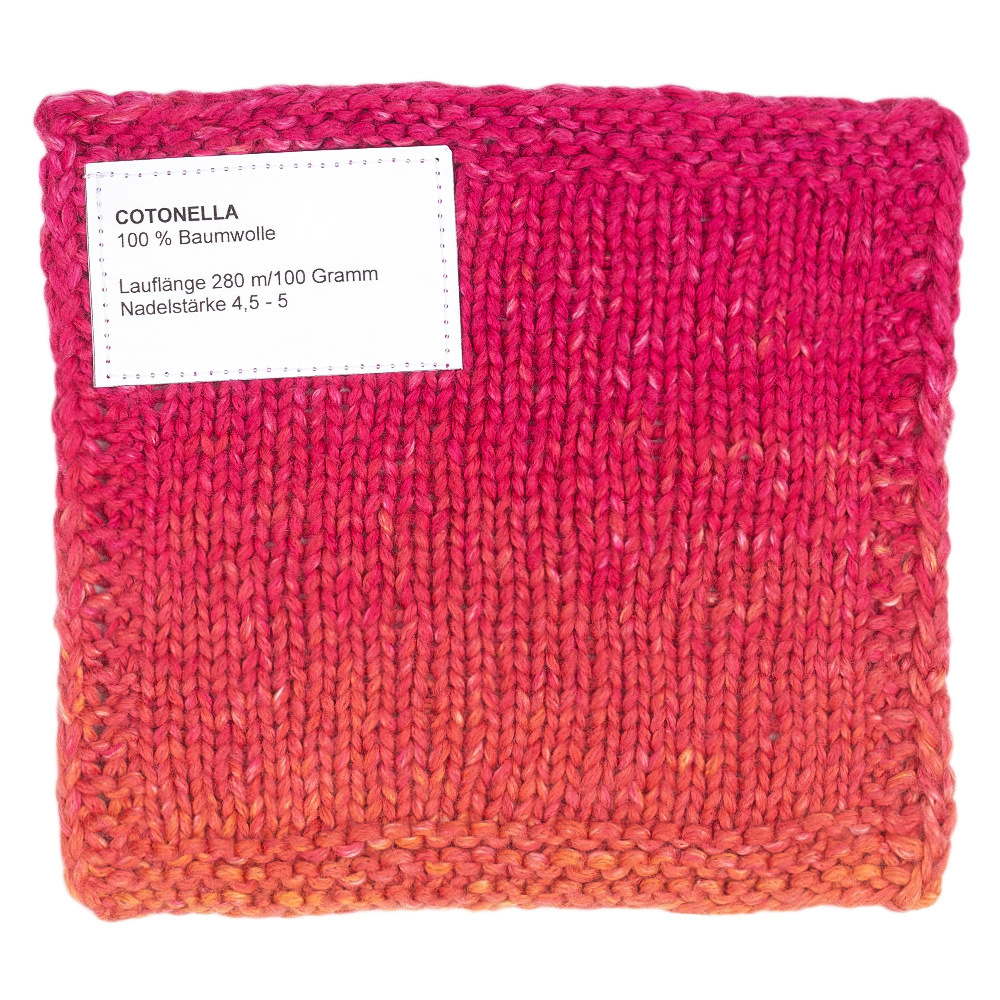 Cotonella er et mykt sommergarn av 100 % bomull med en spesiell sjarm: Den subtile fargeovergangen med spray-dye-effekt gir et levende, lett melert maskebilde når du strikker – helt uten fargeskift. Den behagelige følelsen og høye hudvennligheten gjør Cotonella til det perfekte valget for sommergensere, topper, sjal og barneplagg.