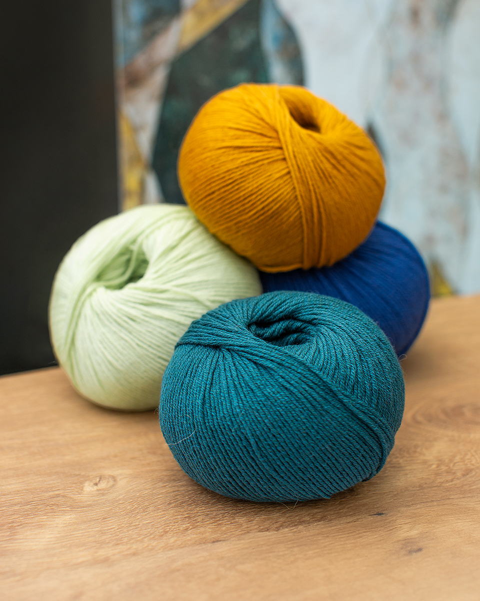 Cotton Wool er et herlig mykt helårsgarn med naturlig karakter. Blandingen av bomull og merinoull kombinerer bomullens pustende letthet med ullens temperaturutjevnende varme – ideelt for strikkeprosjekter som kan brukes hele året.