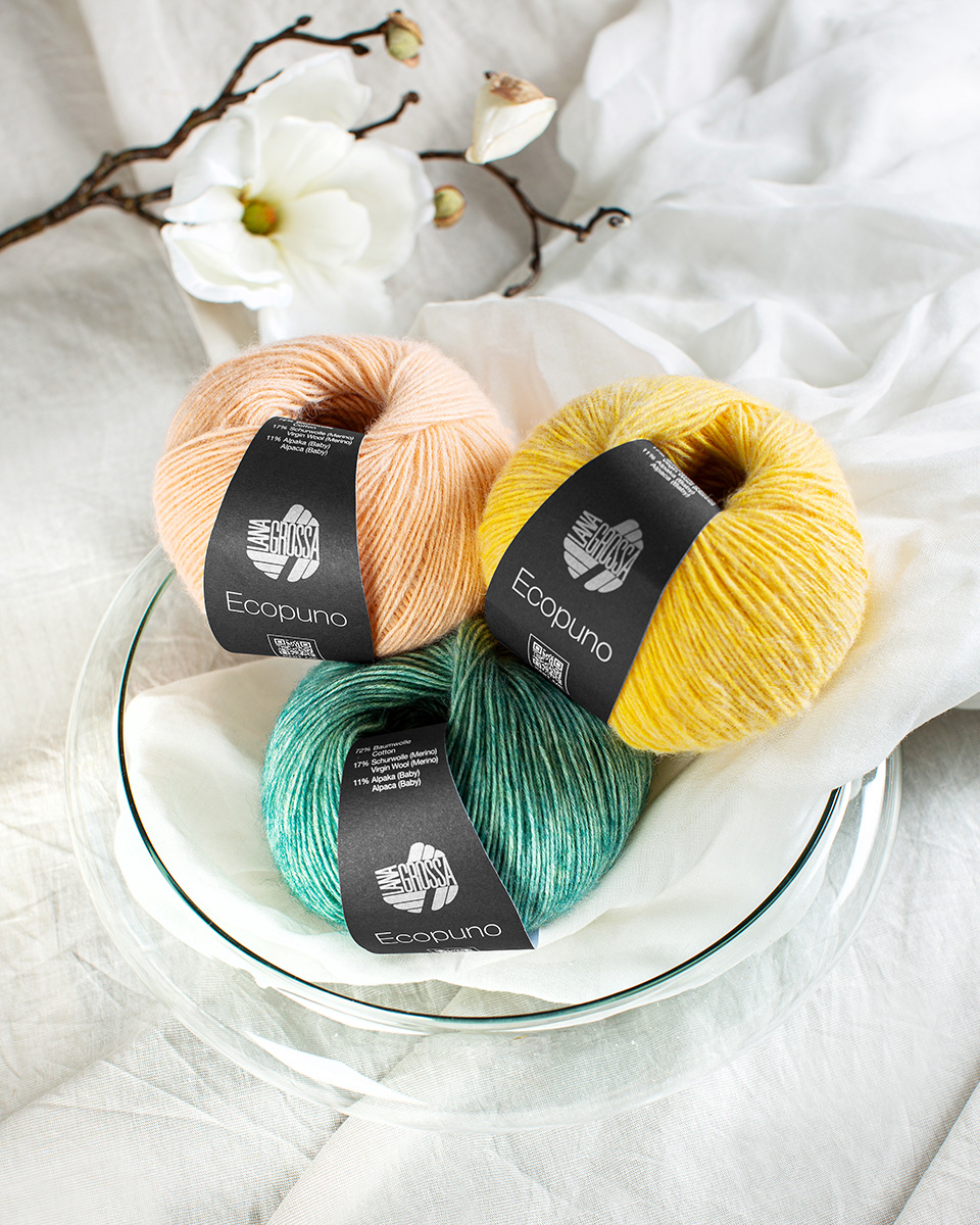 Ecopuno er et høykvalitets helårsgarn med myk, lett følelse og et elegant maskebilde. Den innovative materialblandingen av bomull, merinoull og alpakka forener det beste fra tre naturfibre: kjølende friskhet, behagelig varme og koselig mykhet. Garnet egner seg perfekt til gensere, sjal, cardigans og tilbehør – både for sommeren og overgangssesongene. Ecopuno er formstabilt, pustende og gir en spesielt behagelig brukerkomfort.