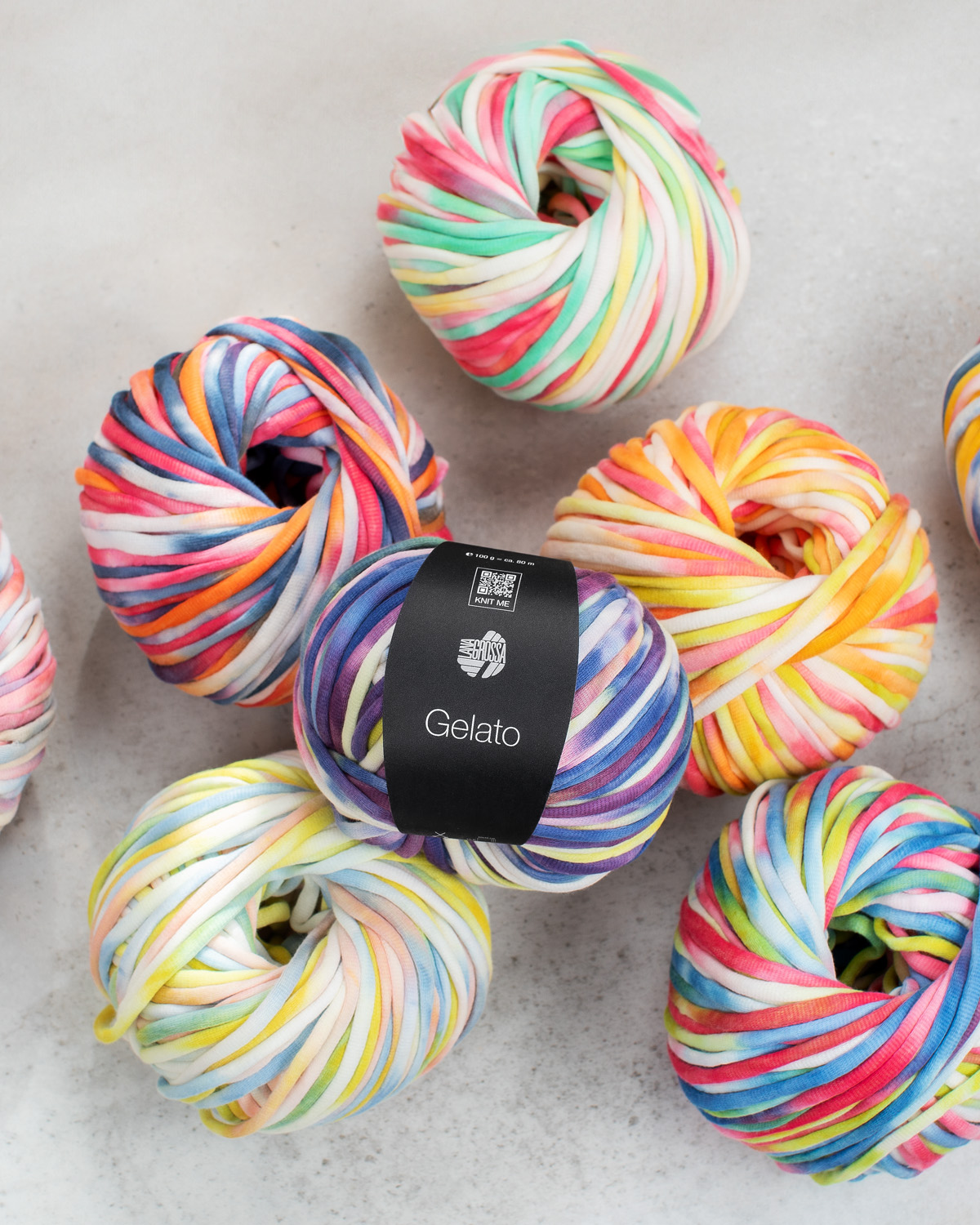 Gelato er et luftig og lett sommergarn med en subtil volumeffekt. Den innovative kombinasjonen av bomull og polyamid gir garnet en myk, vattlignende følelse og et unikt maskebilde med en myk overflate.