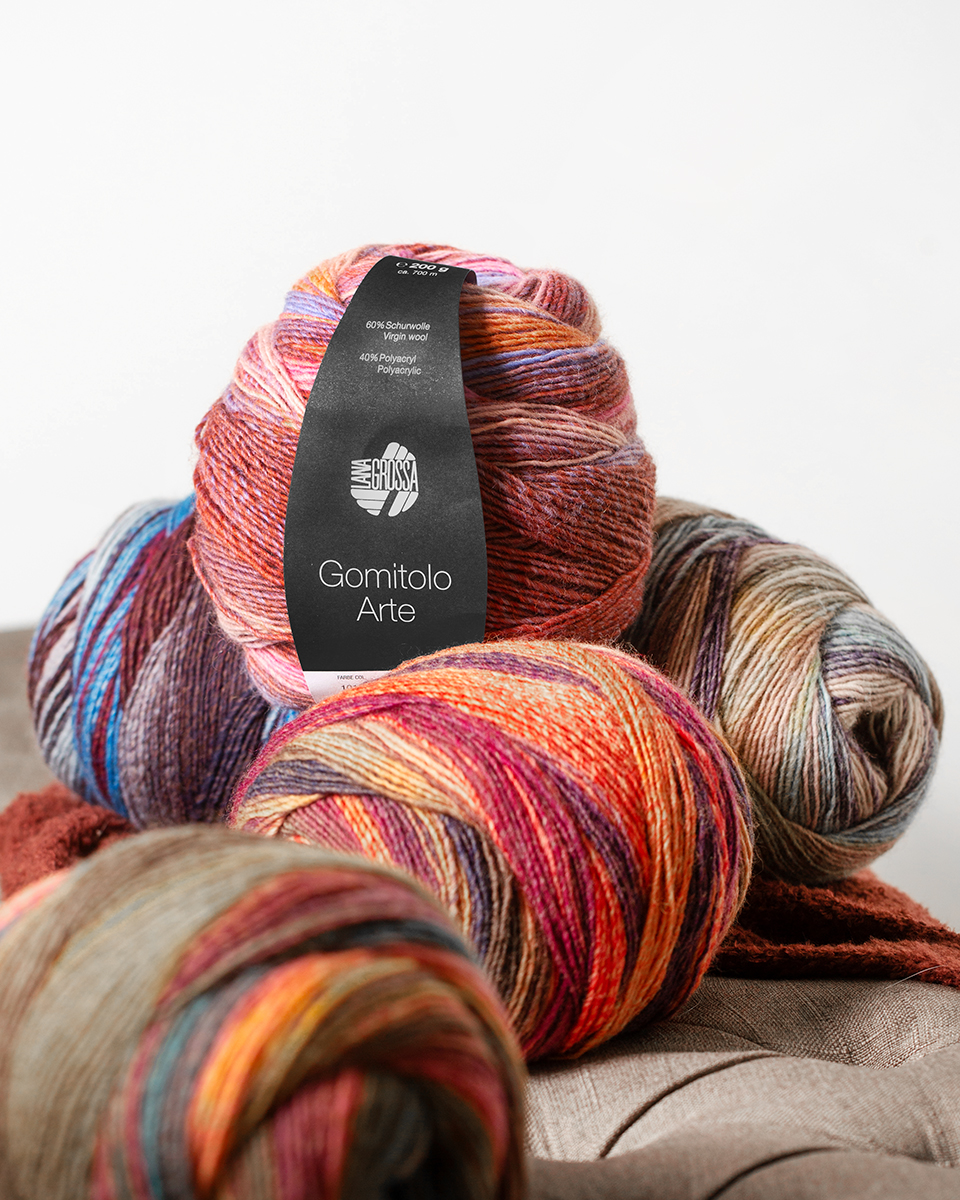 Lana Grossa Gomitolo Arte – det kreative garnet med fargeforløp for uttrykksfulle strikkeideer. Mykt, voluminøst og lettstelt egner det seg ideelt til gensere, jakker, skjerf og sjal. De harmoniske fargespillene gjør hvert prosjekt til et unikt stykke.