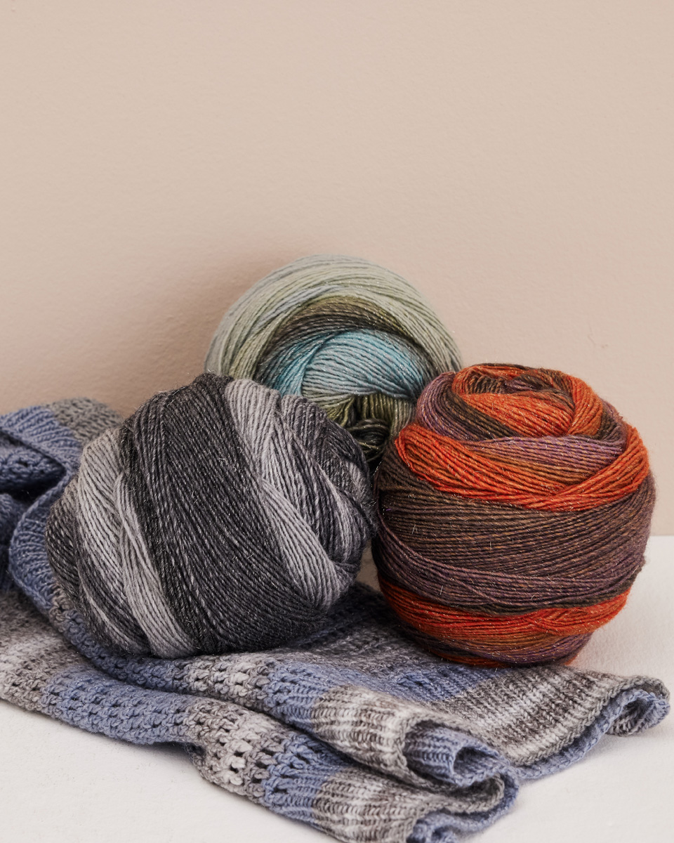 1 ply garn i gradientfarge med en subtil lurex-effekt