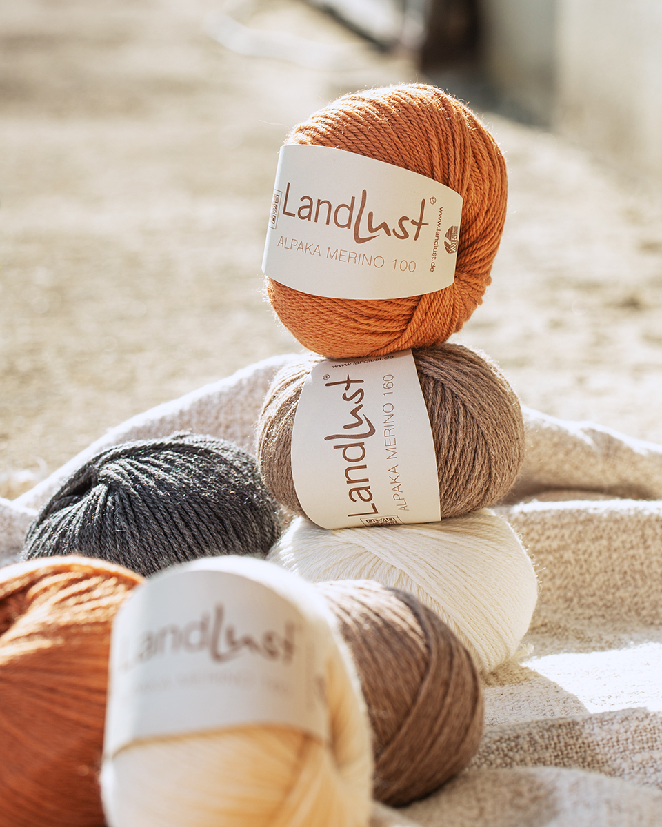 Landlust Alpaka Merino 160 er et eksklusivt, lett garn laget av en herlig myk blanding av alpakka og merinoull, utviklet i samarbeid med magasinet Landlust. Det kombinerer naturlig varme, letthet og maksimal komfort. Garnet har en behagelig glatt overflate, et vakkert maskebilde og egner seg utmerket til tidløse, elegante strikkeplagg med et naturlig uttrykk.