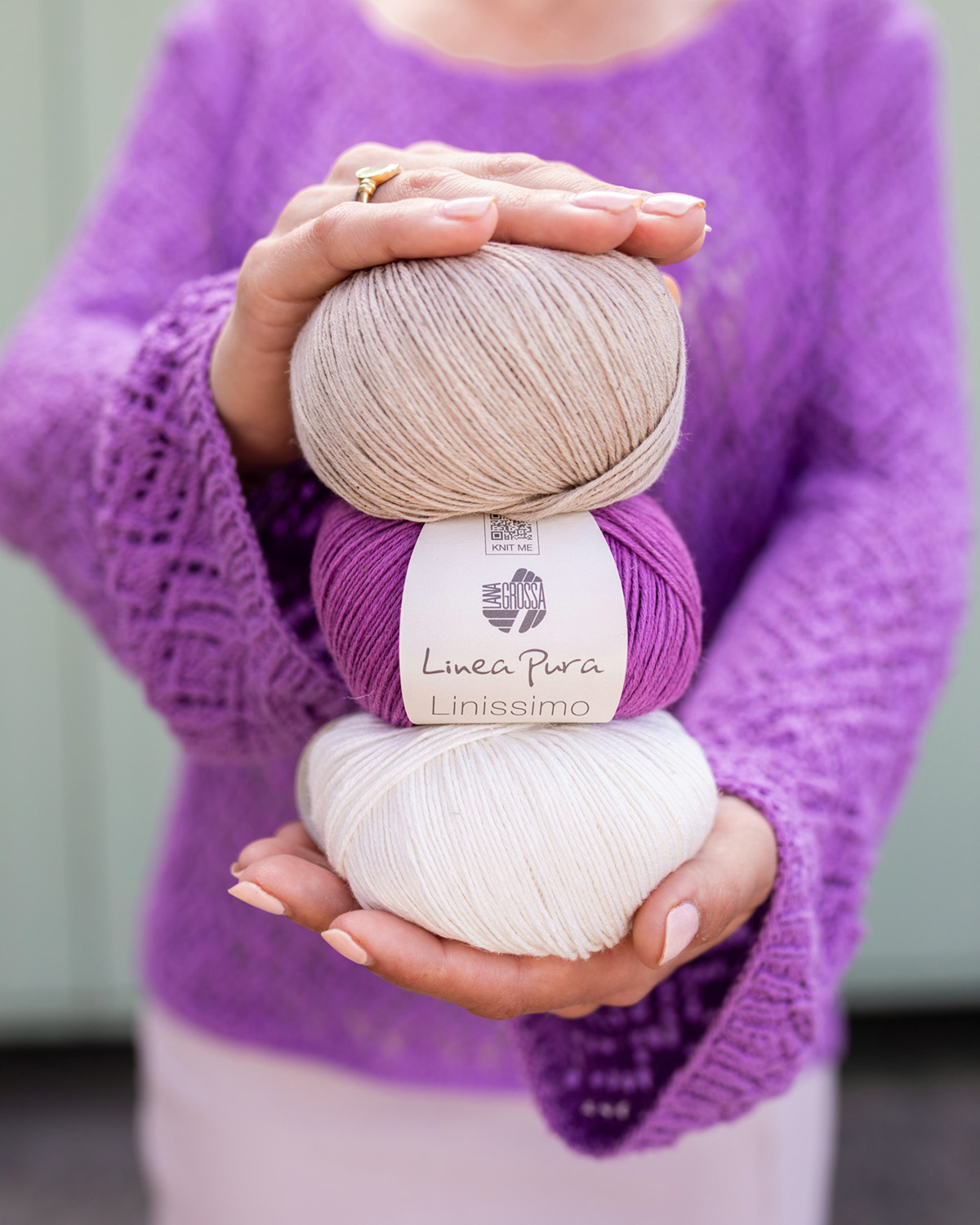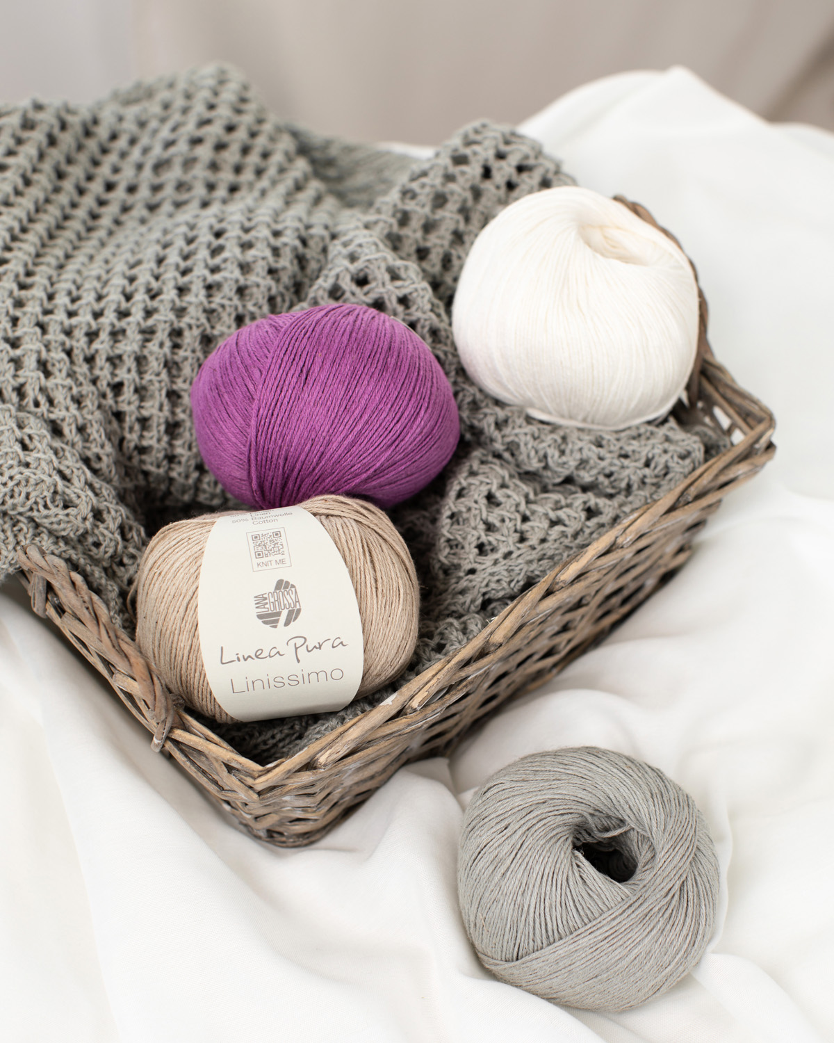 Linissimo er et eksklusivt sommergarn med naturlig sjarm og lett eleganse. Den høykvalitets blandingen av bomull og lin gir en behagelig, kjølig følelse, en diskret struktur og et fint, jevnt maskebilde – ideelt for varme dager. Perfekt egnet for topper, gensere, cardigans eller sjal som skal være luftige, tidløse og stilfulle.