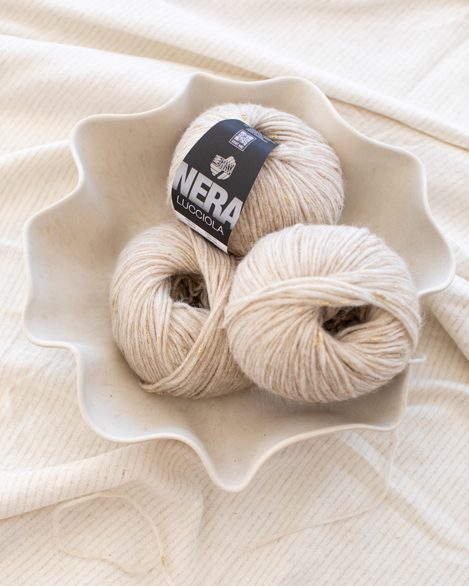 Lana Grossa Lucciola er et fint, glitrende garn som gir ethvert strikkeprosjekt et elegant preg. Den delikate glanstråden skaper livlige effekter som særlig kommer til sin rett i skjerf, sjal og festlige overdeler. Lett og behagelig å jobbe med – perfekt for moderne, eksklusive strikkeplagg med et hint av glamour.