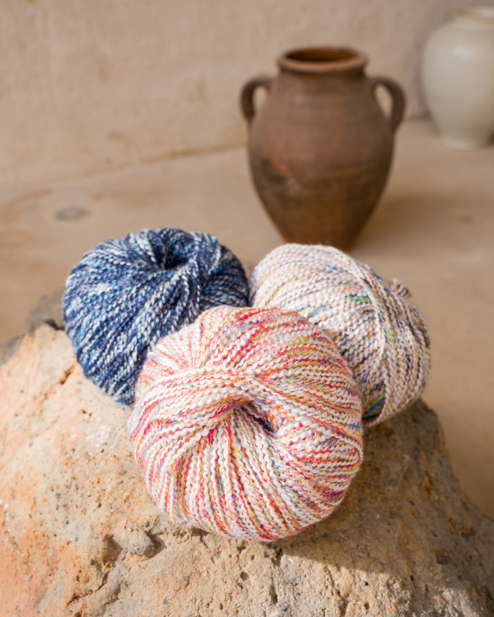 Sommerlig tweedgarn i bomull, tvunnet med et fargerikt effektgarn