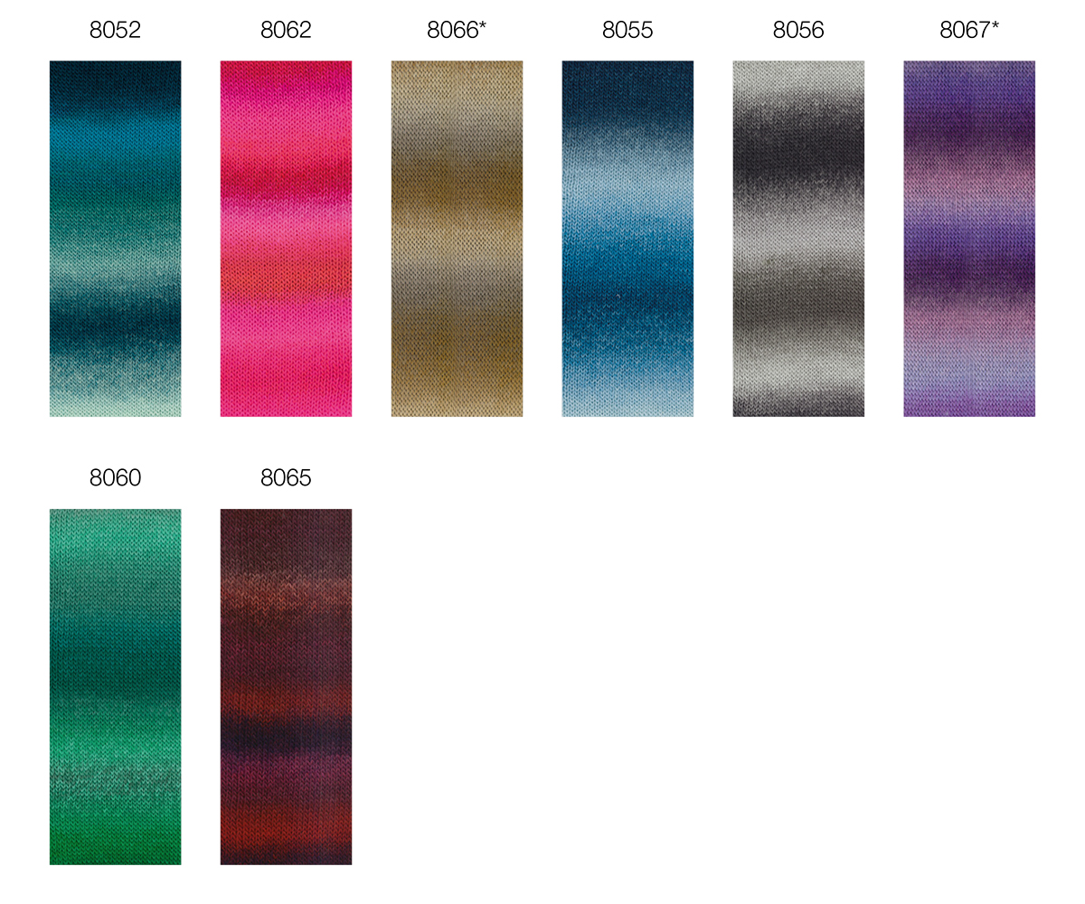 Lana Grossa Meilenweit 100 Color Mix Soft kombinerer myk ull med stilige fargeforløp for moderne og behagelige strikkeprosjekter.
