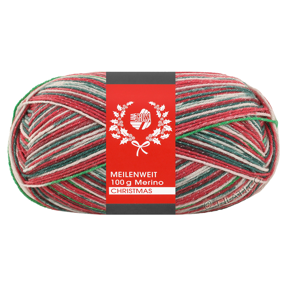 Lana Grossa MEILENWEIT 100g Merino Christmas LurexInkl. MVA, og eksl leverans og ev importkostnader, Basispris: 89,50 / kgEkskl. MVA, pluss leverans og ev importkostnader, Basispris: 75,20 / kg