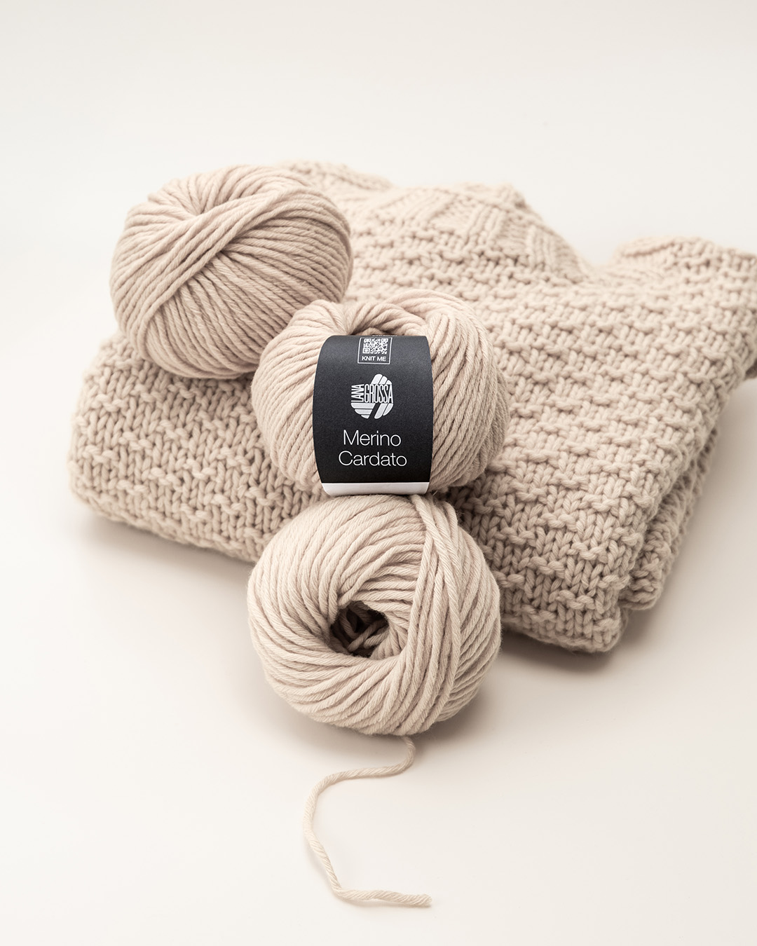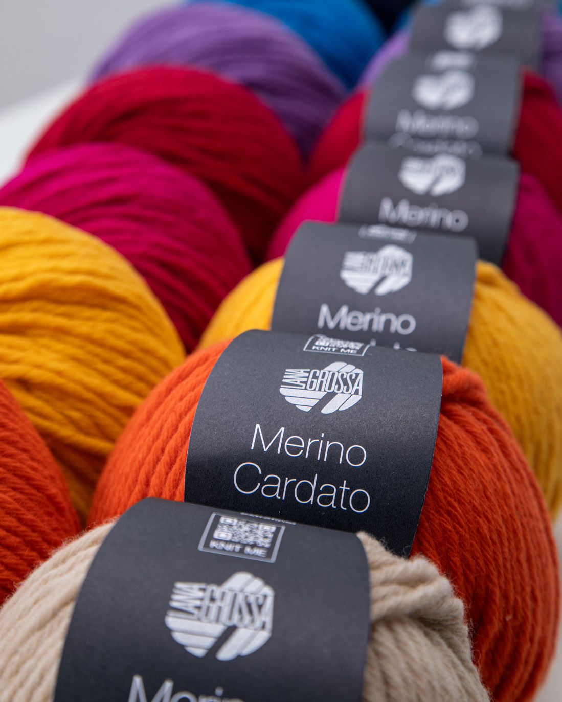 Lana Grossa Merino Cardato – det eksklusive merinogarnet med kardet struktur. Særlig mykt, voluminøst og varmende egner det seg perfekt til gensere, jakker, skjerf og tilbehør. Den naturlige lettheten gir behagelig komfort. Dette garnet er ideelt for nybegynnere.