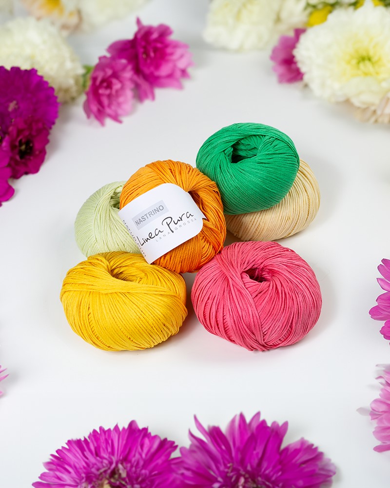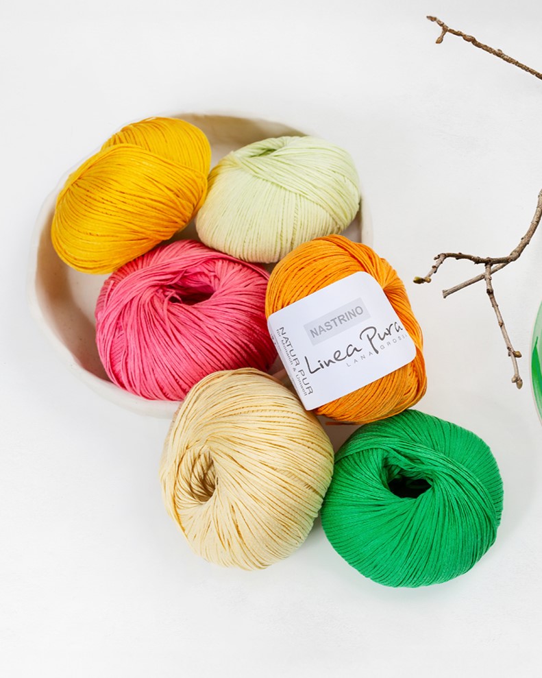Nastrino er et lett, fint båndgarn med silkeaktig glans og flytende fall – ideelt for luftige sommerplagg med et elegant preg. Den glatte strukturen gir et rent, jevnt maskebilde og en spesielt behagelig følelse mot huden. Med Nastrino får du feminine, moderne uttrykk som kombinerer letthet og stil på en perfekt måte.