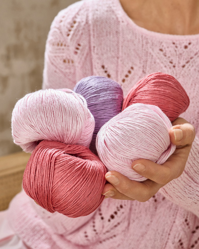 Avkjølende lin møter myk Tencel. Sammen danner de et perfekt, vakkert sommergarn med et uttrykk som veksler mellom matt og silkemykt.
