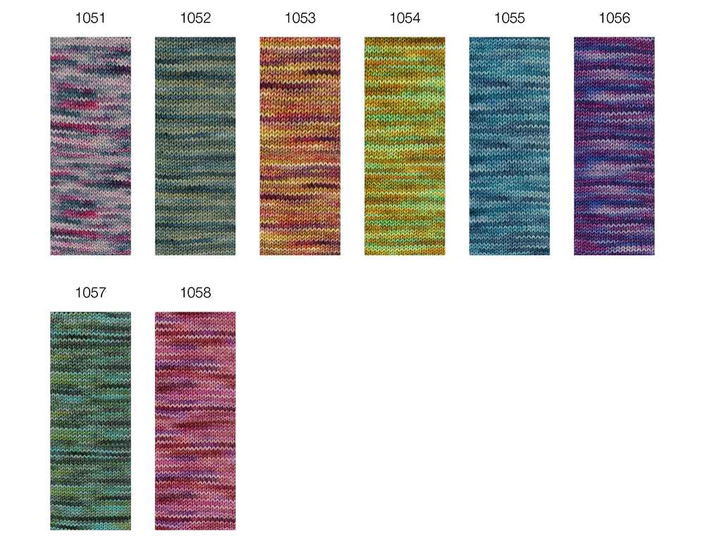 Med Vintage Socks Multi bringer Lana Grossa livlige fargespill i en trendy retrostil på pinnene. De varierte multicolor-overgangene oppstår automatisk under strikkingen og gir hvert par sokker et individuelt, nostalgisk inspirert uttrykk.