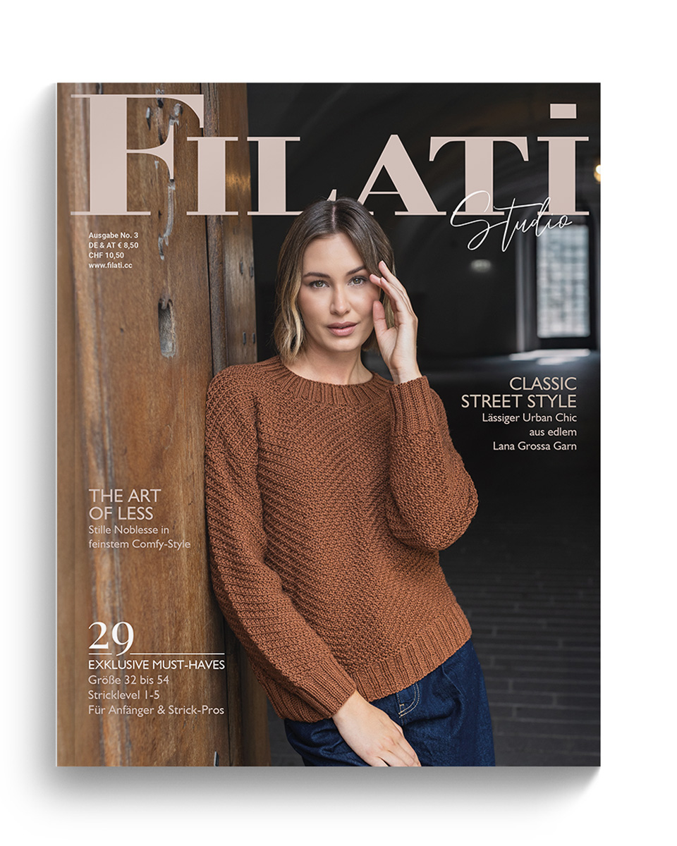 Skap unike øyeblikk med Lana Grossa-garn – håndlaget med kjærlighet. Filati Studio nr. 3 tilbyr 29 strikkeoppskrifter i 5 vanskelighetsgrader, hvor komfort møter tidløs eleganse. Velg ditt design og opplev ren Good Feelings!
