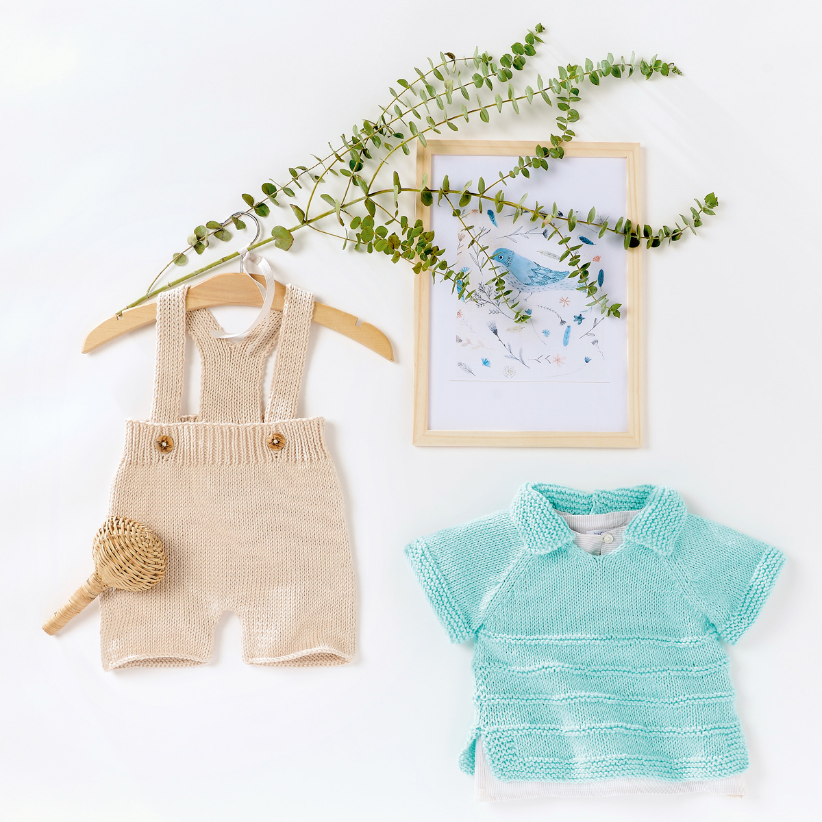 Lana Grossa-kvalitet ”Soft Cotton” (70 % bomuld, 30 % polyakryl, løbelængde = ca. 140 m / 50 gr.): 100(100-100-150) gr beige (fv 3), strikkepinde nr. 4 og 4½, 4 knapper 18 mm Ø