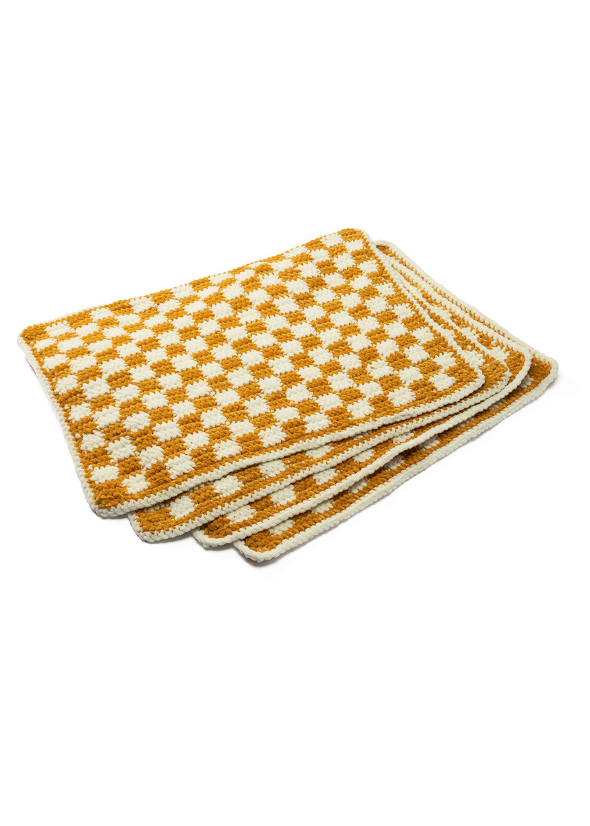 Lana Grossa-kvalitet „The Look Fine” (100 % polyester, løpelengde = ca. 100 m/50 g): hver ca. 200 g creme (farge 102) og rapsgul (farge 128); 1 heklenål nr. 4,5.