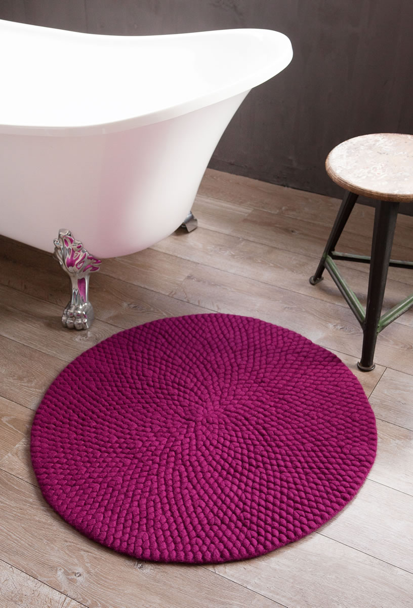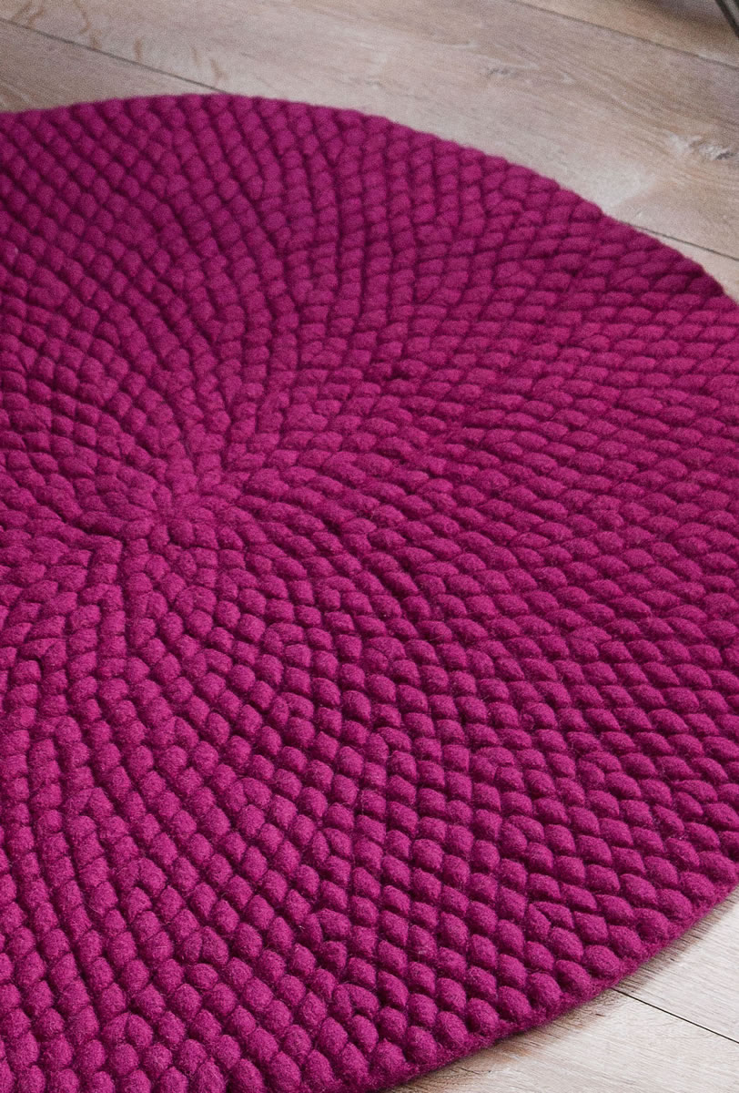 Lana Grossa-Qualität „Feltro” (100 % Schurwolle – schrumpft beim Waschen ca. 30 – 40 %, LL = ca. 50 m/50 g): ca. 1500 g Zyklam (Fb. 62); 1 Wollhäkelnadel Nr. 9.