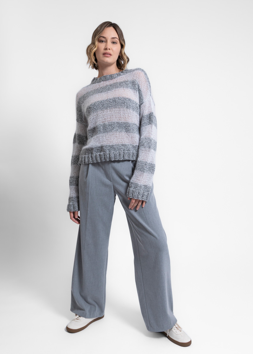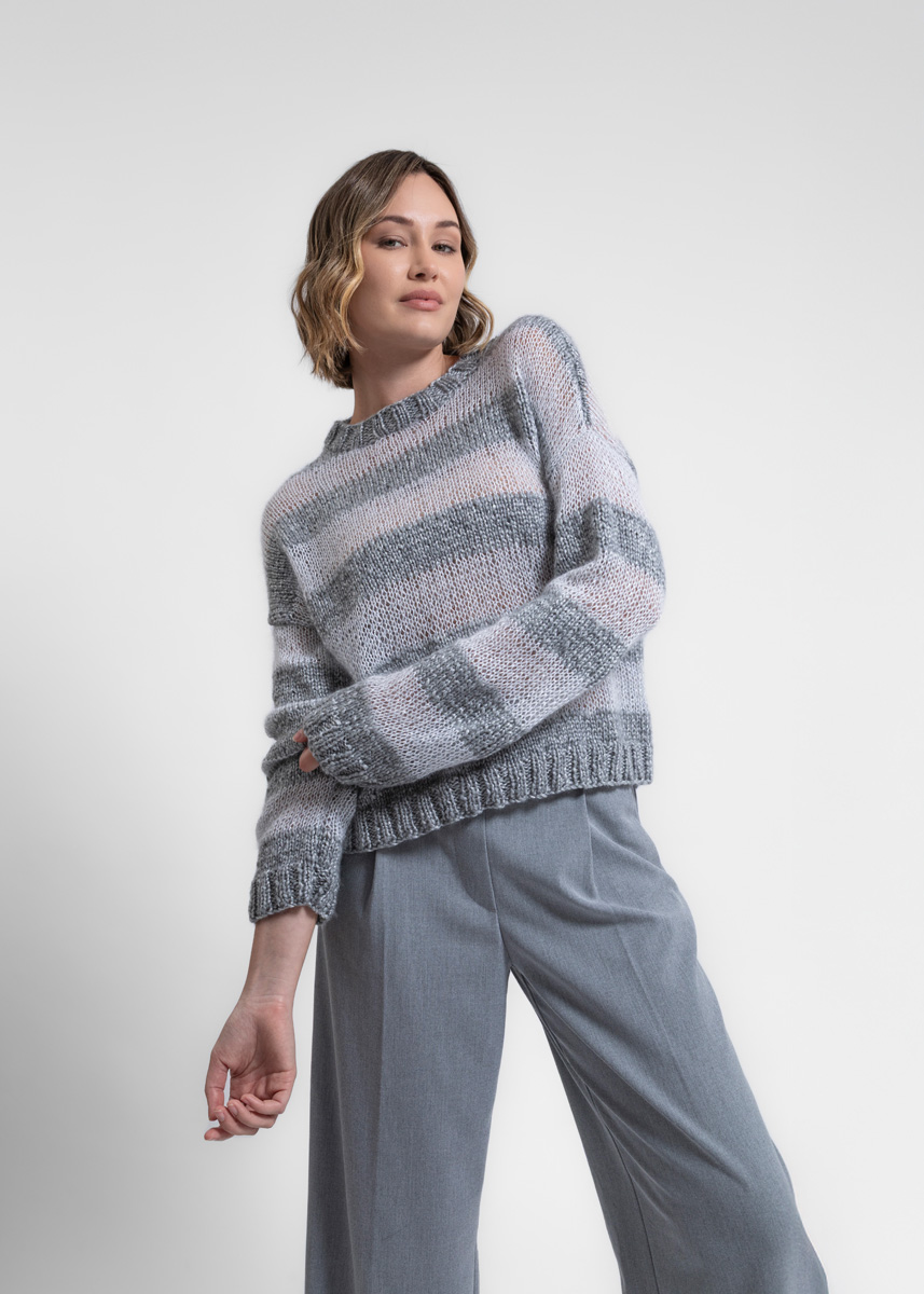 Lana Grossa LUCIDA 58% ren ny ull merino, 42% viskose Løpelengde: ca. 100 m / 50 g • 200 (200 - 250 - 250 - 300 - 300) g lysgrå (farge 7)