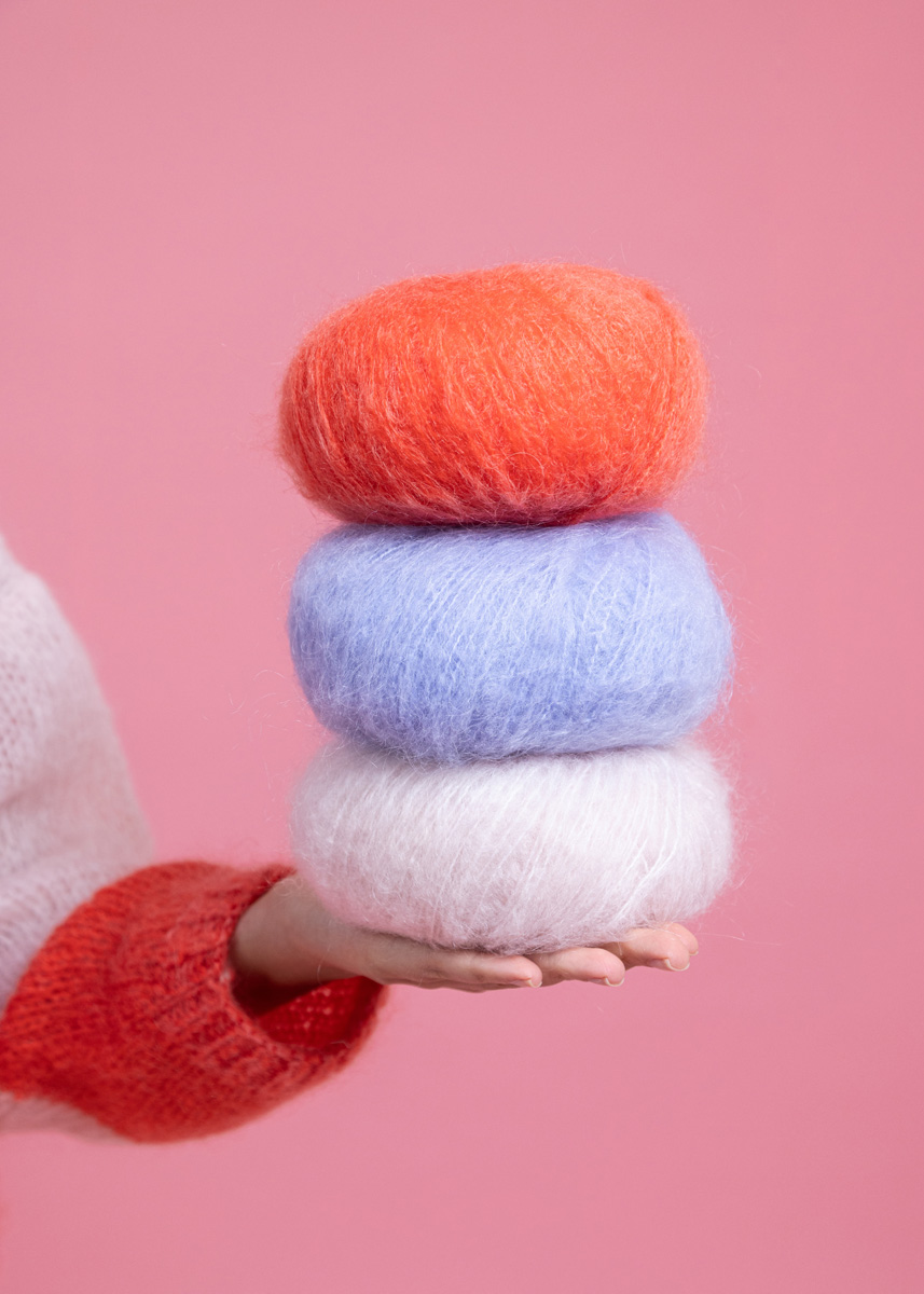 70% mohair, 20 % ren ny ull merino, 10% polyamid