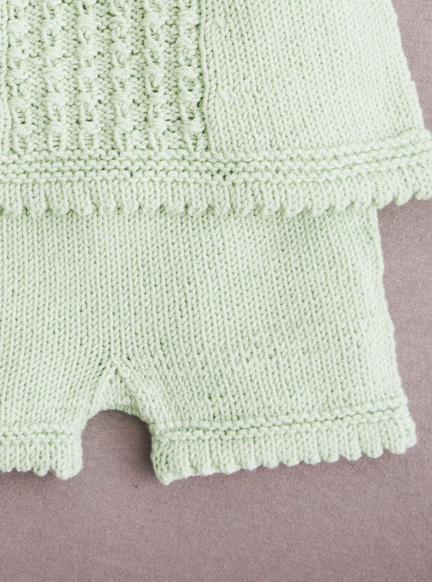 Lana Grossa Elastico (96 % Baumwolle, 4 % Polyester, Lauflänge 160 m/50 g); 50 (100/100) g Blassgrün (Fb 133); eine 40 cm lange Rundstricknadel Nr. 3,5.