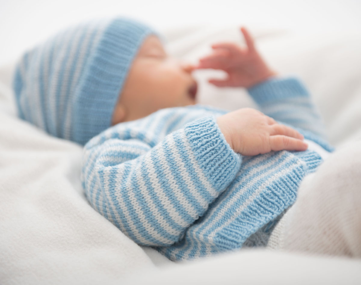 So Ton-in-Ton von Kopf bis Fuß abgestimmt, ist dieses Outfit geeignet, den ersten offiziellen Fototermin für die Geburtsanzeige ganz entspannt hinter sich zu bringen oder auch gemütlich zu verschlafen.