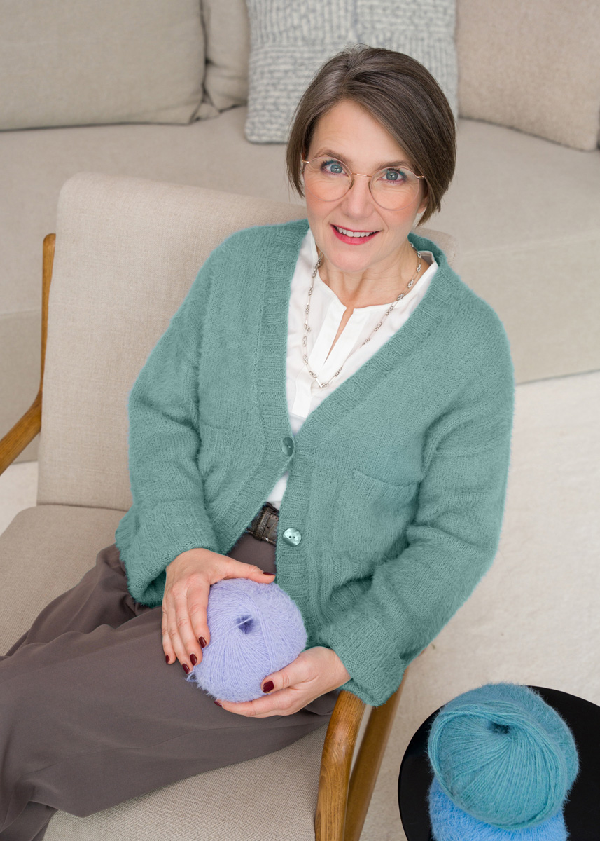Lana Grossa Cosy Socks (70% ren ny ull (merino), 30% polyamid, LL = ca. 400 m/100 g): 300 (400 – 400 – 400) g salviegrønn (frg 6); pinner nr. 3,5; 1 rundpinne nr. 3,5; 3 knapper Ø 22 mm.