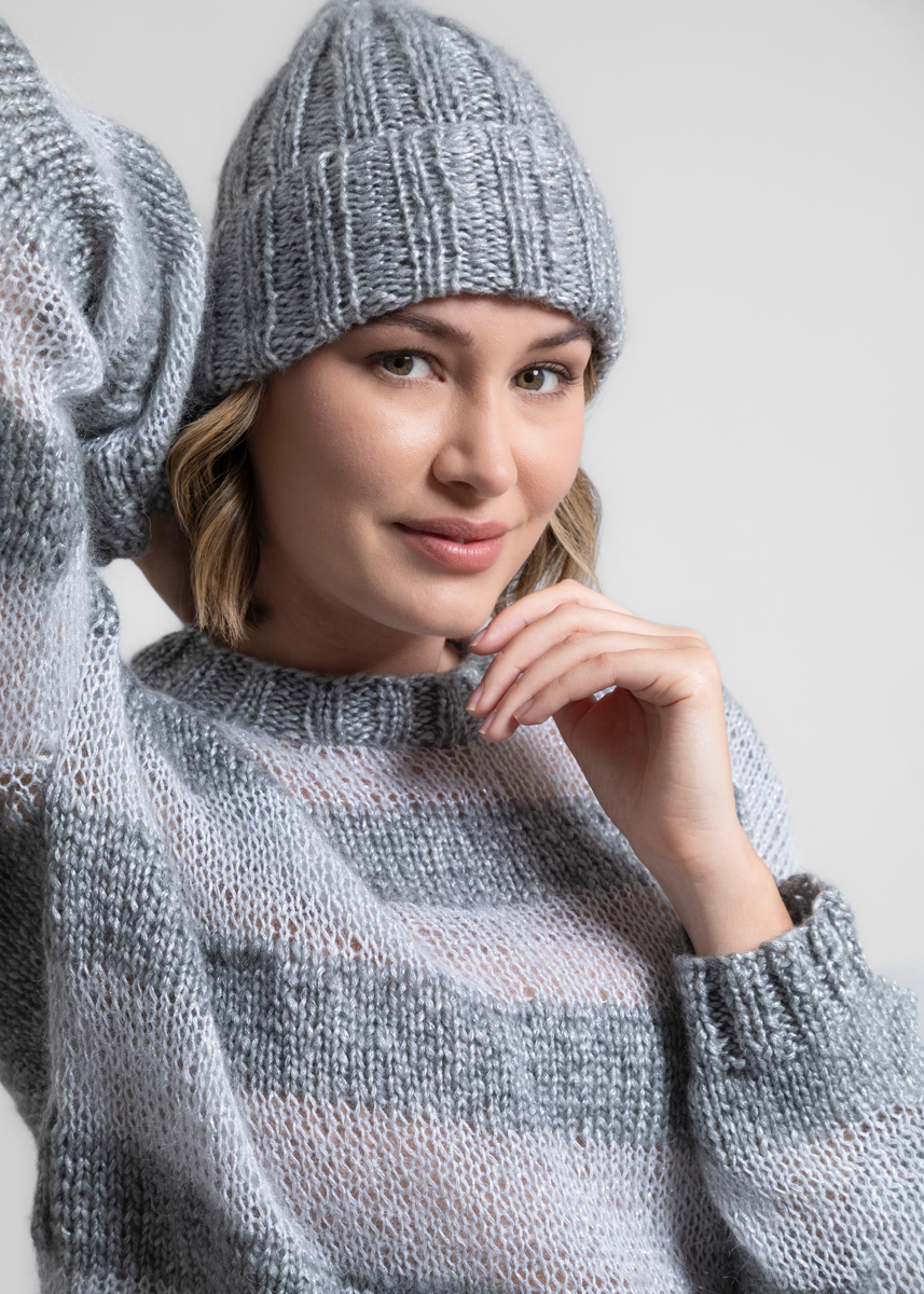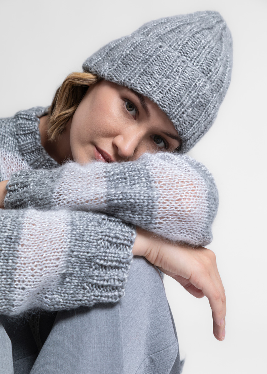 Lana Grossa LUCIDA 58% ren ny ull merino, 42% viskose Løpelengde: ca. 100 m / 50 g • 100 g lysgrå (farge 7)