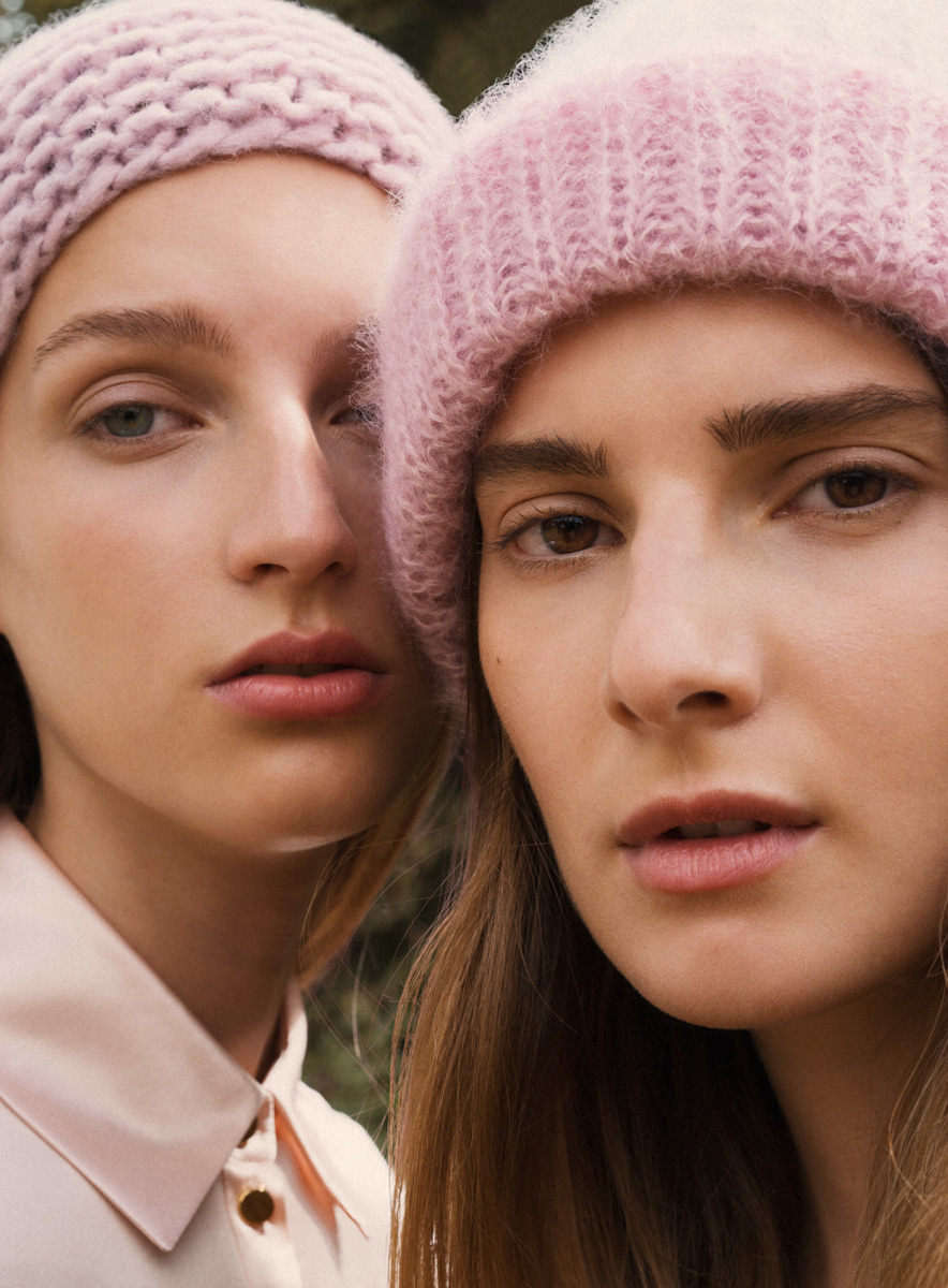 Lana Grossa-kvalitet ”Silkhair Lusso” (78 % mohair, 14 % silke, 4 % polyester, 4 % polyamid, løpelengde = ca. 210 m / 25 gr.): ca. 25 gr nude (farge 903) og Lana Grossa-kvalitet ”Silkhair” (70 % (superkid) mohair, 30 % silke, løpelengde = ca. 210 m / 25 gr.): ca. 25 gr rosa (farge 85), settpinner nr. 4.