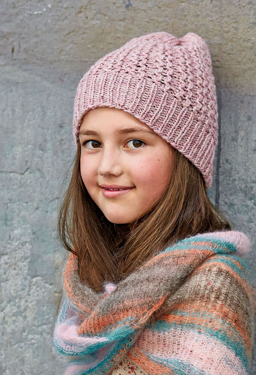 Lana Grossa Alta Moda Alpaca (90% Alpaka, 5% Schurwolle, 5% Polyamid, Lauflänge 140 m/50 g), 100 g Petrol/Royal meliert (Fb 36) oder Petrol meliert (Fb 8) oder Rosa meliert (Fb 45) oder Flieder meliert (Fb 44); 1 Spiel Stricknadeln Nr. 5