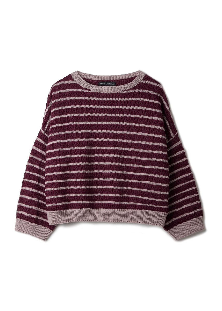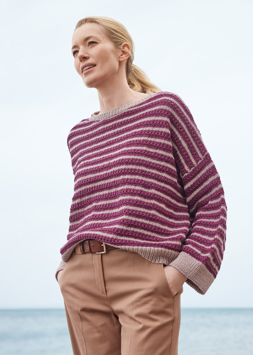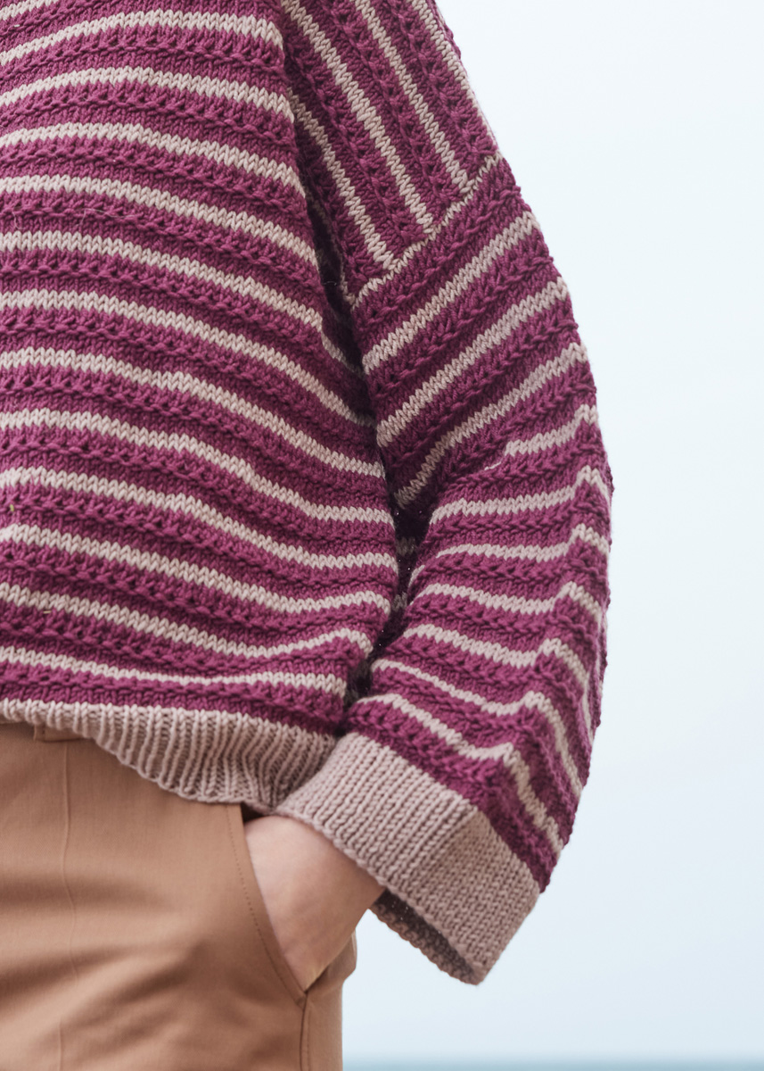 2. VARIANT Garn: Se 1. variant, men bytt grège ut med 400 (400 - 450 - 450) g grårosa (frg 1033) og bjørkegrønn med 250 (250 - 300 - 300) g mørk burgunder (frg 1035)