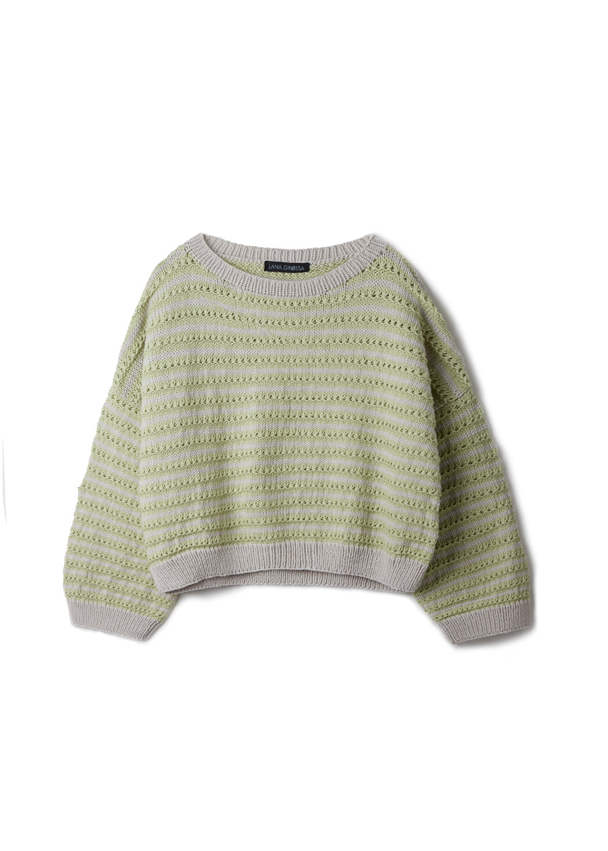 1. VARIANT Garn: Lana Grossa Cool Wool Big (100 % ren ny ull (merino), LL = ca. 120 m/50 g), 400 (400 – 450 – 450) g grège (frg 1010) og 250 (250 – 300 – 300) g bjørkegrønn (frg 1029)