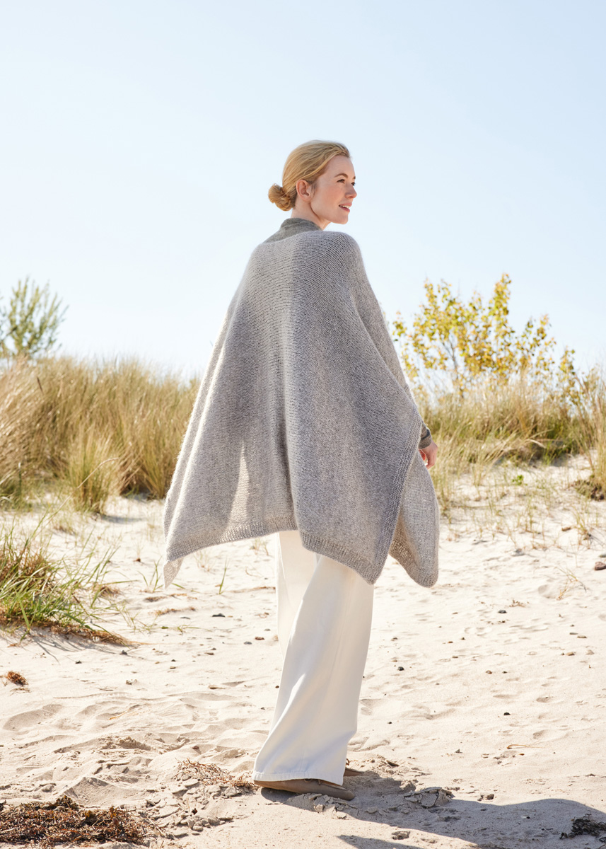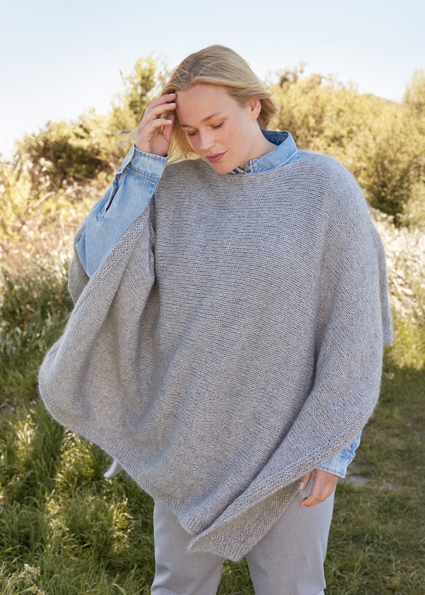 Info: Strikk ponchoen med en tråd Landlust Soft Tweed 180 sammen med en tråd Silkhair.