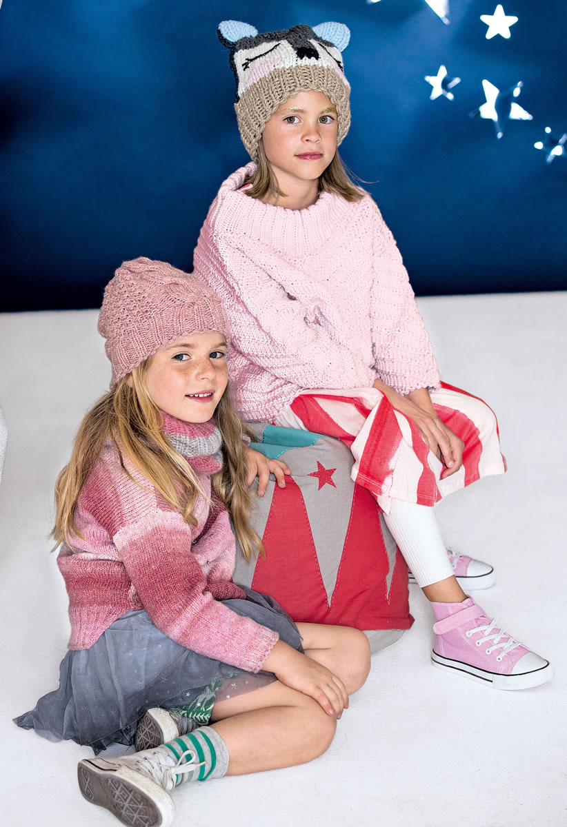 Lana Grossa Bingo (100 % Schurwolle, Lauflänge 80 m/50 g), 400 (450) g Blassrosa (Fb 6); je 1 Rundstricknadel Nr. 4,5 und 5, 1 Zopfnadel