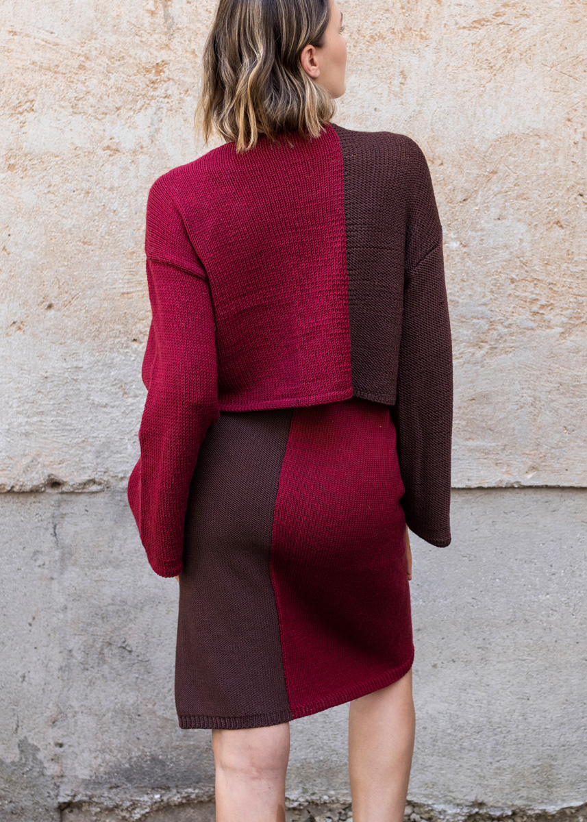 Modellen har en total lengde på 58 (60 - 62 - 64 - 68 - 68) cm, en lårvidde på 62 (70 - 78 - 86 - 98 - 110) cm og en hoftevidde på 87 (94 - 102 - 110 - 122 - 134) cm. Skjørtet strikkes fram og tilbake nedenfra og opp, og sys sammen til slutt over splitten.