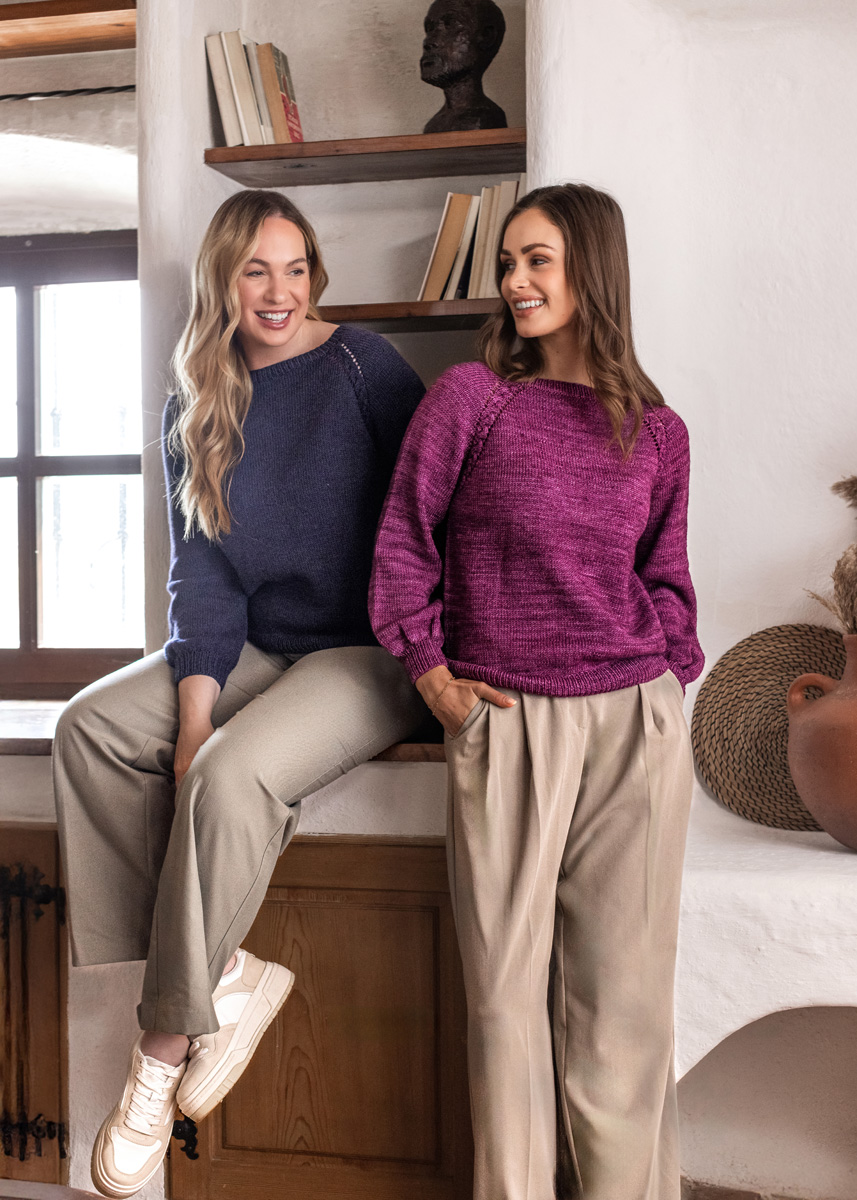 Lana Grossa COOL WOOL BIG VINTAGE 100 % ren ny merinoull Løpelengde: ca. 120 m / 50 g • 450 (500 - 600 - 650 - 700 - 750) g plomme (farge 7165) eller Lana Grossa COOL WOOL BIG MÉLANGE (We Care) 100 % ren ny merinoull Løpelengde: ca. 120 m / 50 g • 450 (500 - 600 - 650 - 700 - 750) g svartblå melert (farge 1630) • Rundpinner nr. 3,5 og 4 / 40, 80 og 100 cm • Settpinner nr. 3,5 og 4 • Hjelpepinne • 9 maskemarkører [MM]