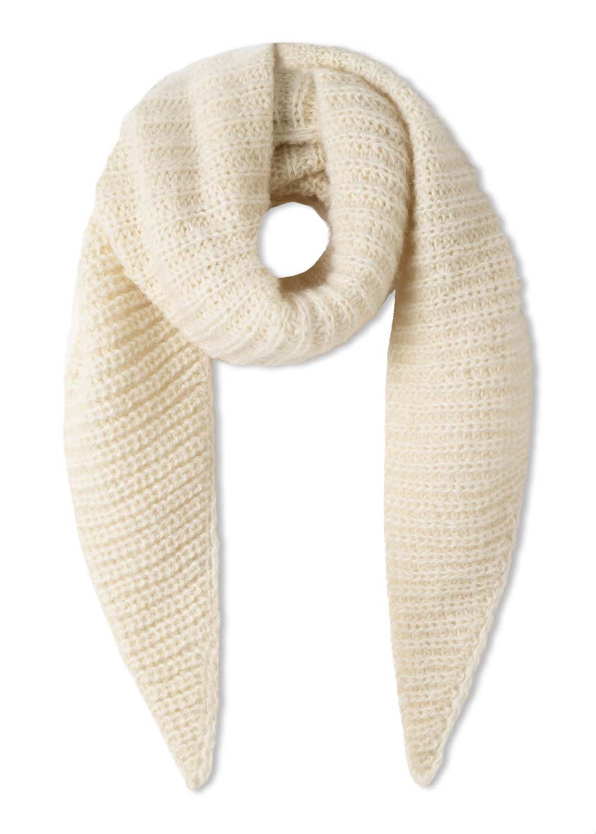 Lana Grossa Mohair di Gio (55% mohair (superkid), 45% ren ny ull (merino superfin), løpelengde 85 m/50 g), 250 g i råhvit (farge 9); 1 rundpinne nr. 7, 100 cm lang.