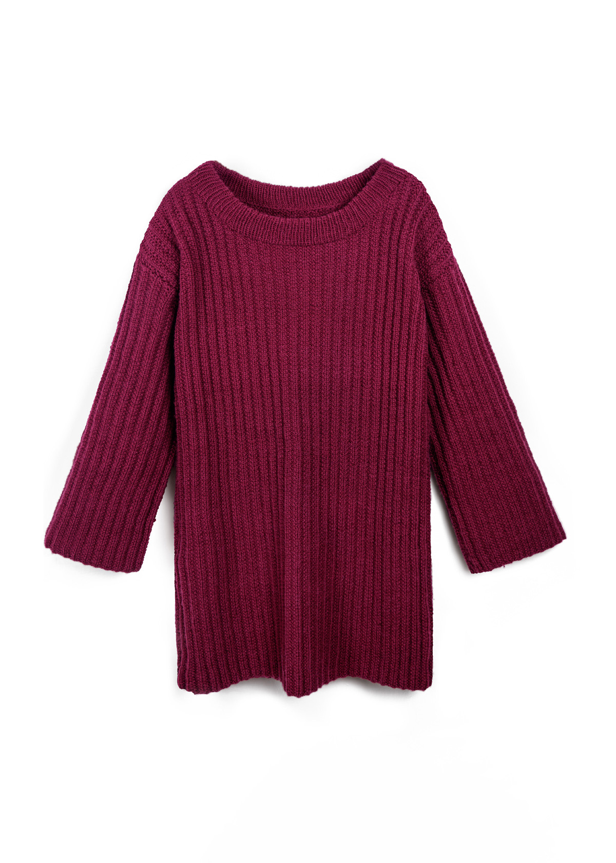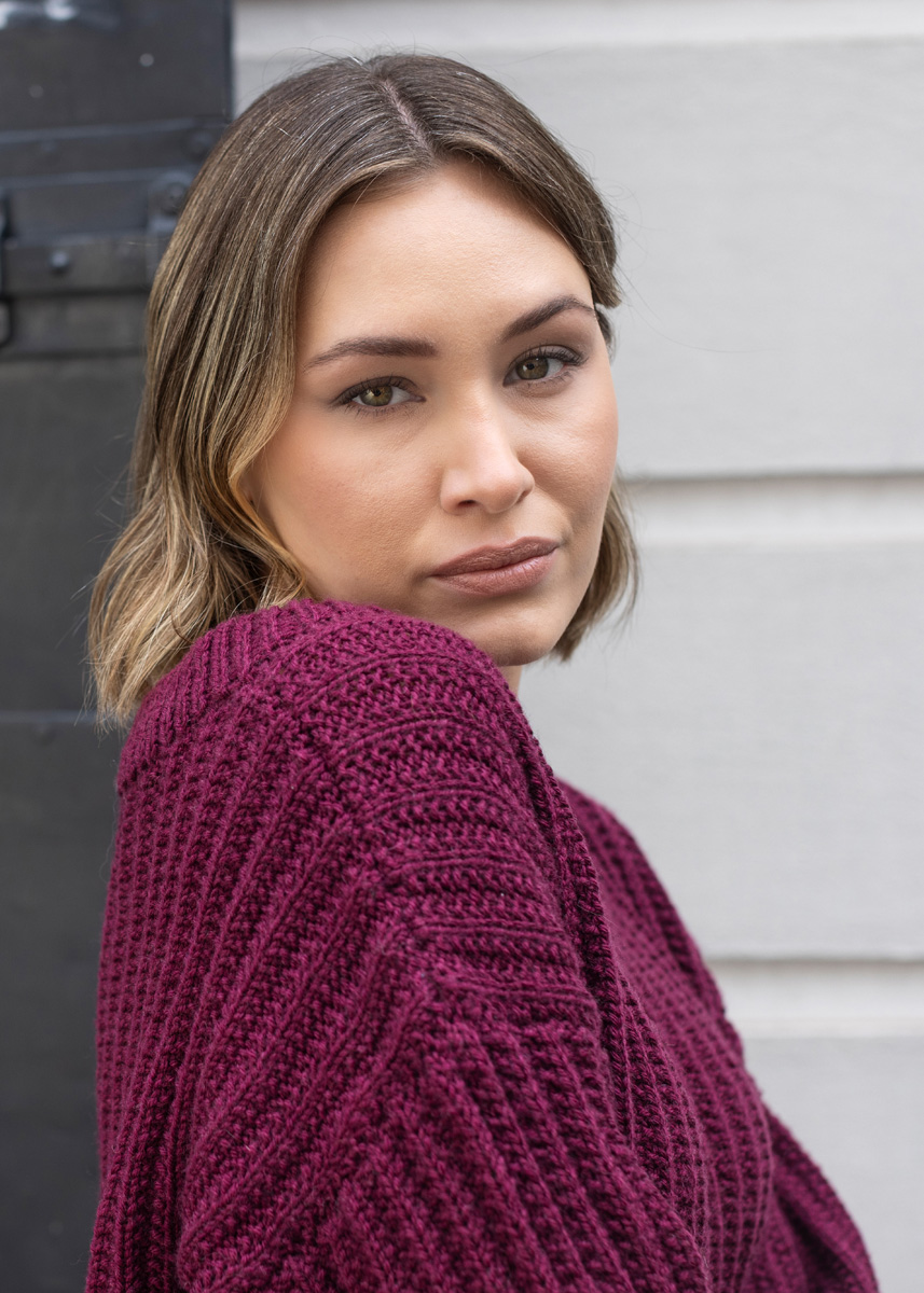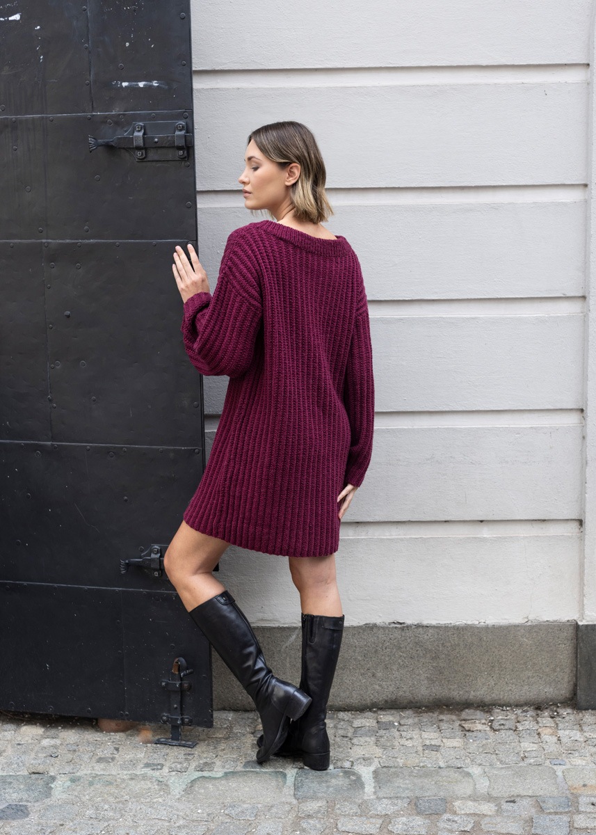 Lana Grossa MERINO UNO 100 % ren ny ull merino Løpelengde: ca. 125 m / 50 g • 800 (850 - 850 - 850 - 900 - 900) g Bordeaux (farge 59) • Strikkepinner nr. 4,5 • Rundpinne nr. 4,5 / 60 cm
