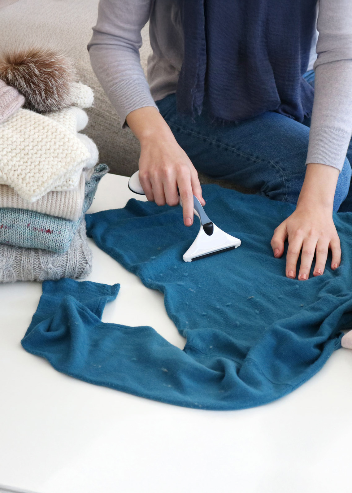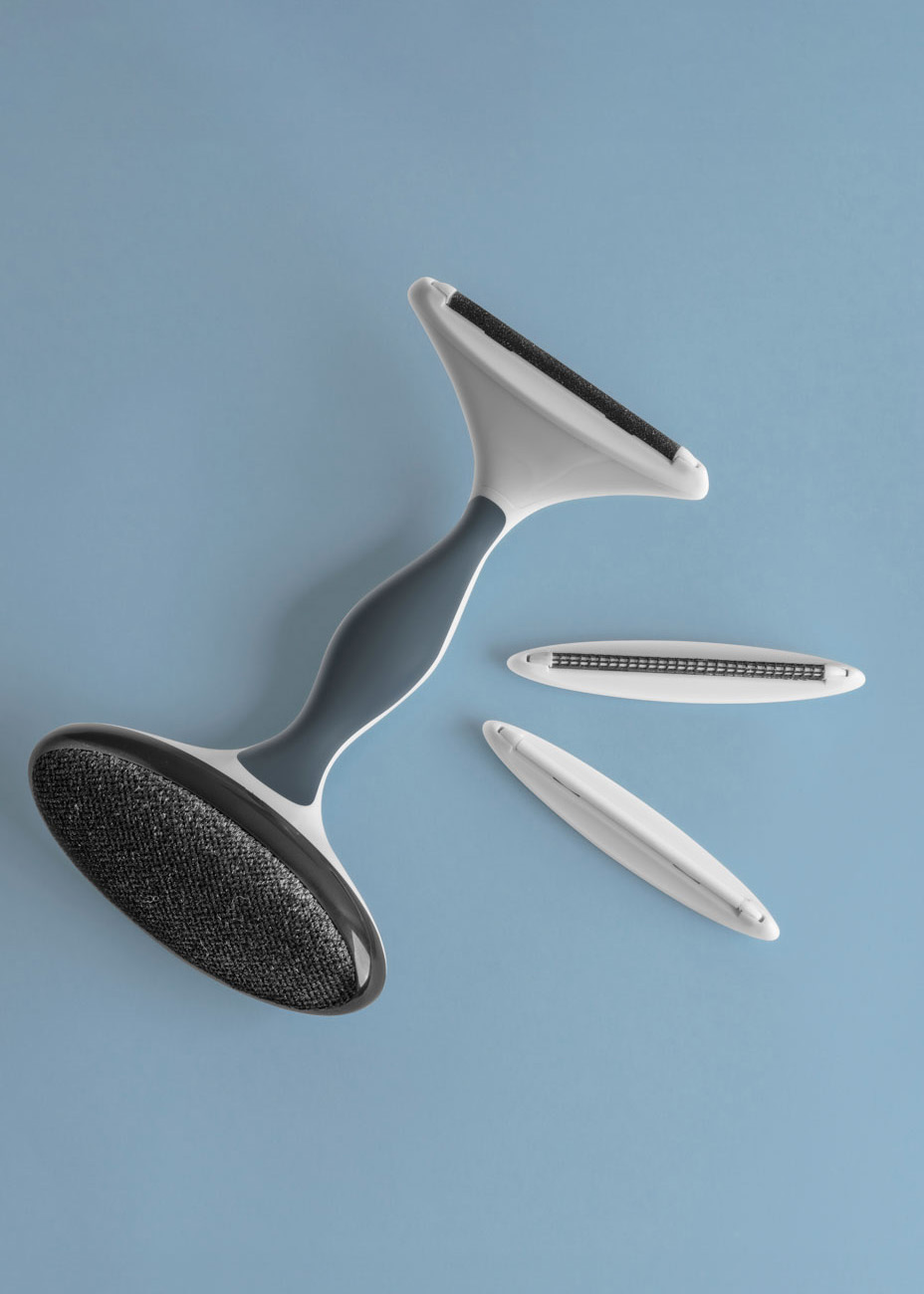 4-i-1 Barbermaskin og lobørste fra GLEENER. Batterifri barberhøvel for stoff/ull og lobørste. Inkluderer 3 forskjellige tilbehør. Fjerner lpilling, lo og dyrhår. Perfekt for strikkeplagg.