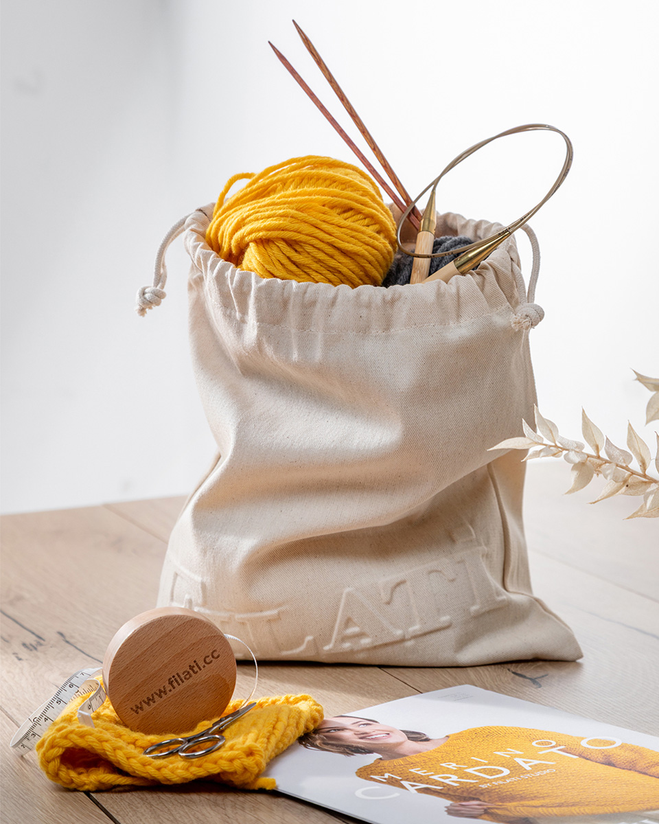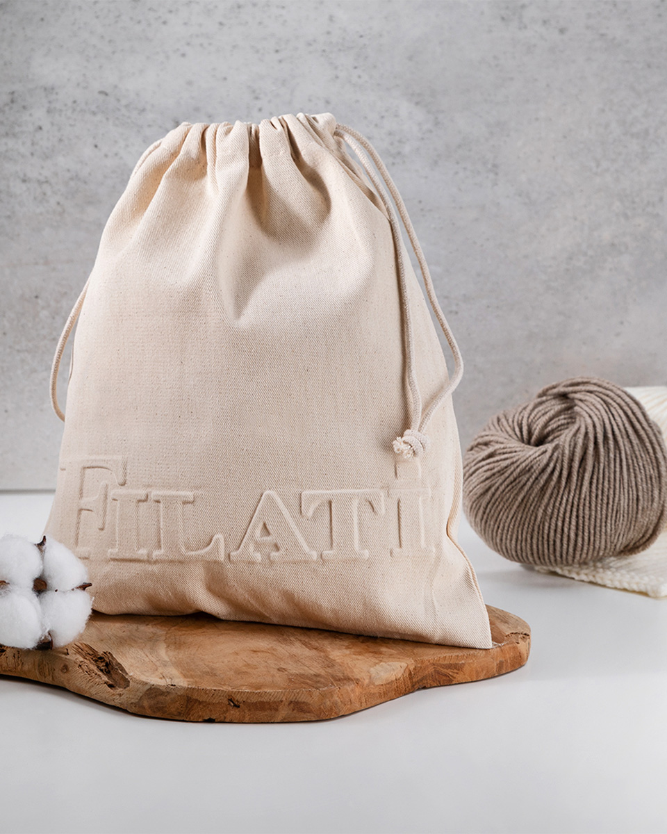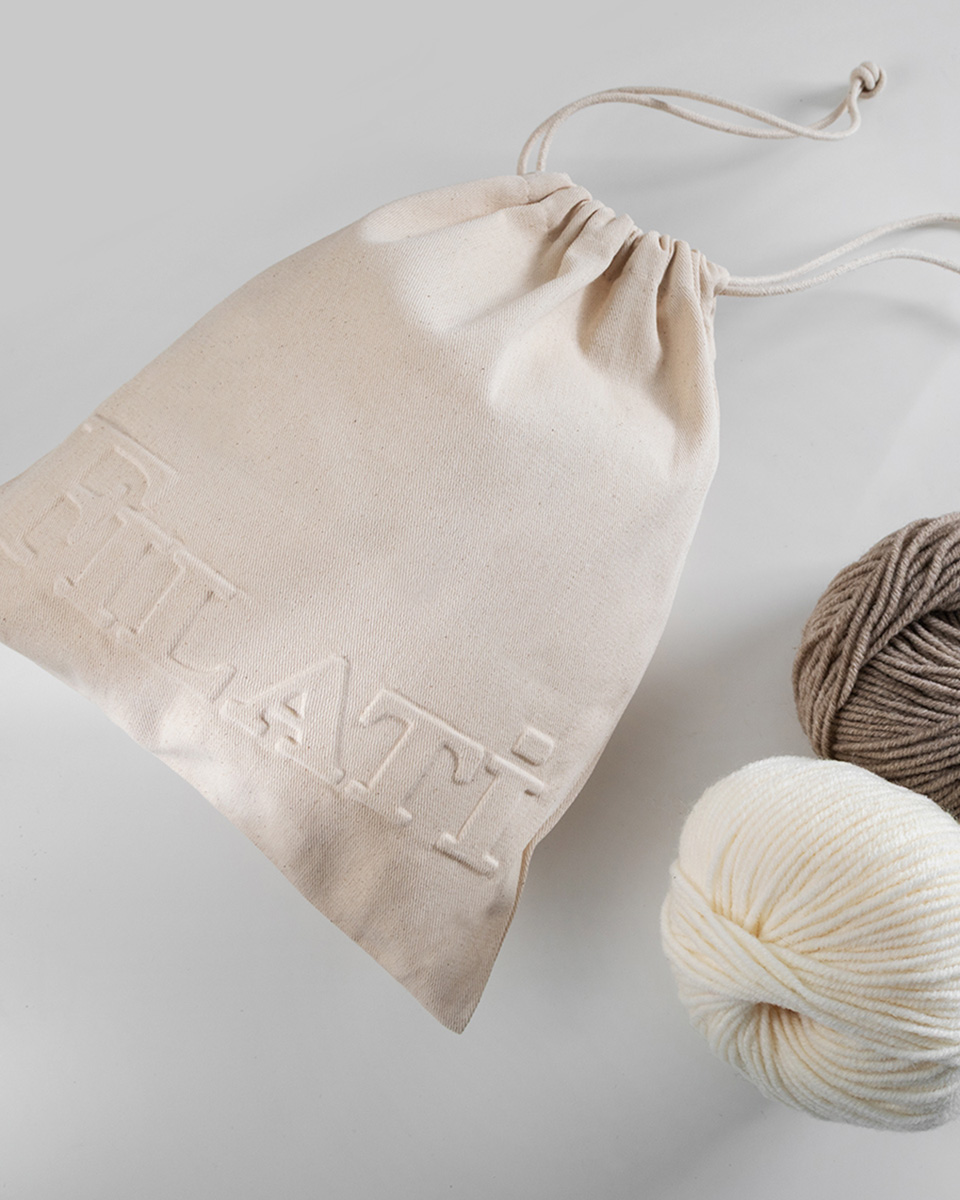 Denne minimalistiske prosjektposen i 100 % sertifisert bomull er laget for dine mindre strikke- og hekleprosjekter – lett, enkel og helt fokusert på det essensielle. Klart design, høy kvalitet i følelsen og med en fin preging som gir den et moderne og eksklusivt uttrykk.